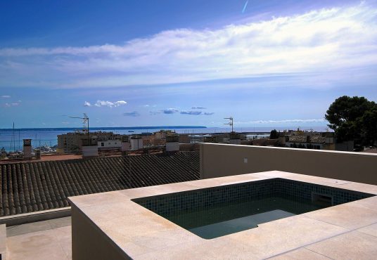 Et af i alt 10 rækkehuse, der er blevet fuldstændig renoveret og ligger i Palmas trendy El Terreno-distrikt. Fordeling: A2 soveværelser, 2 badeværelser, stue-spisestue med åbent køkken, stor terrasse på stueniveau, tagterrasse med pool, underjordisk parkeringsplads. Havudsigt fra stueniveau! Der blev lagt stor vægt på de forarbejdede materialer, aircondition varmt / koldt, gulvvarme, natursten og […]