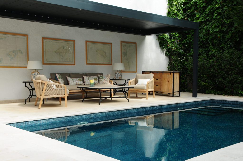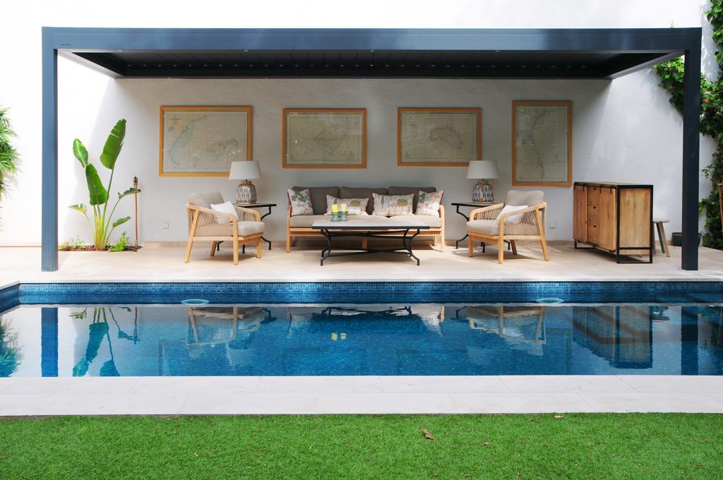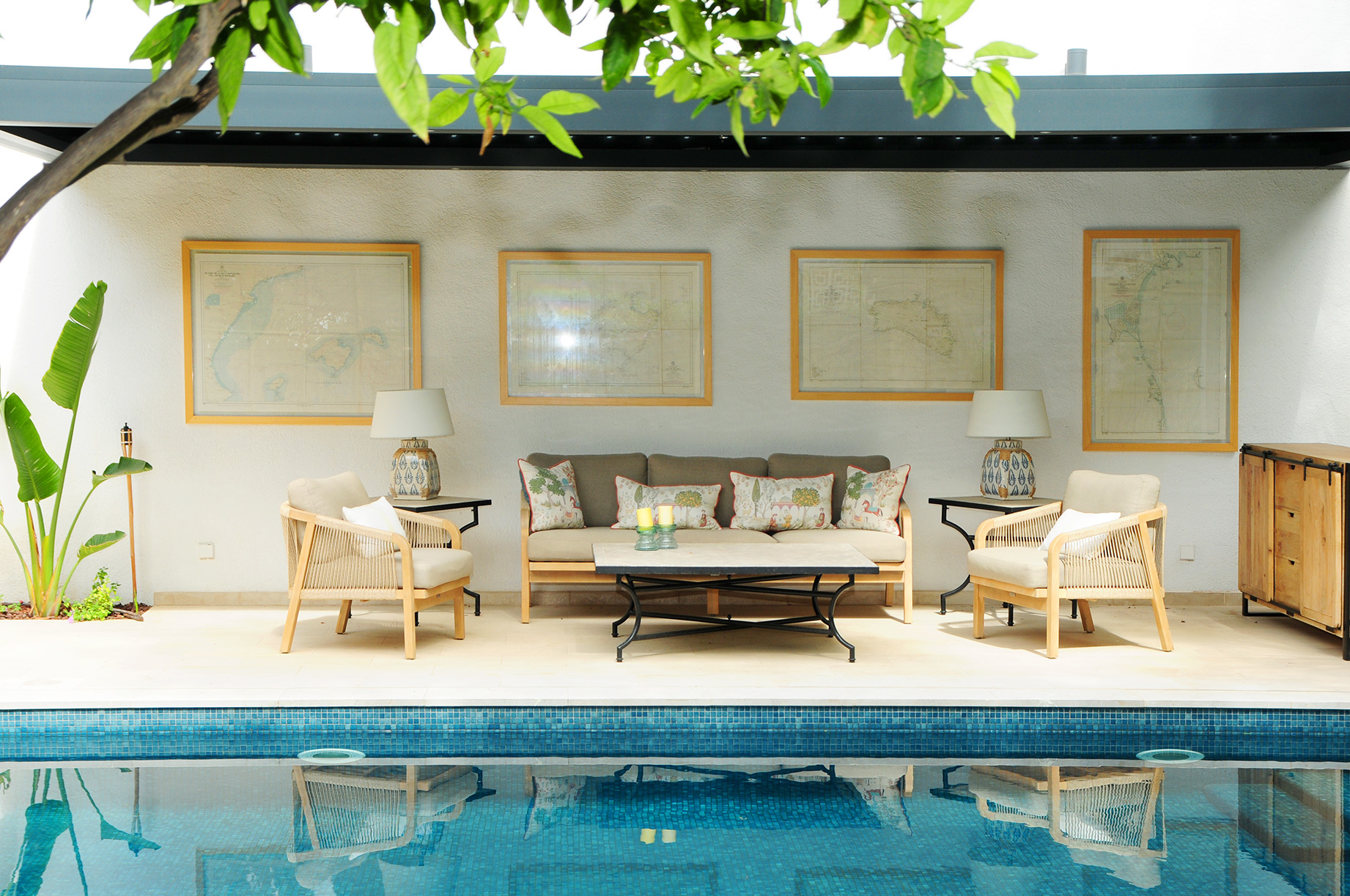 Den rummelige grund har en 92m2 garage, en 32m2 swimmingpool, en have og flere terrasser.
