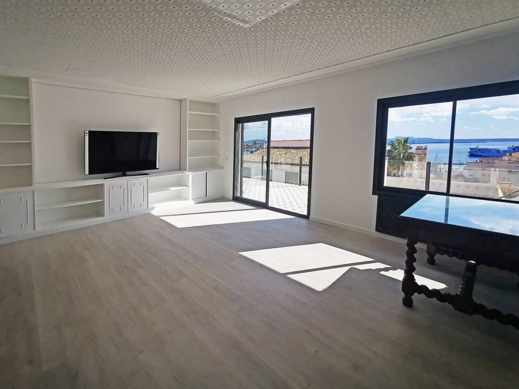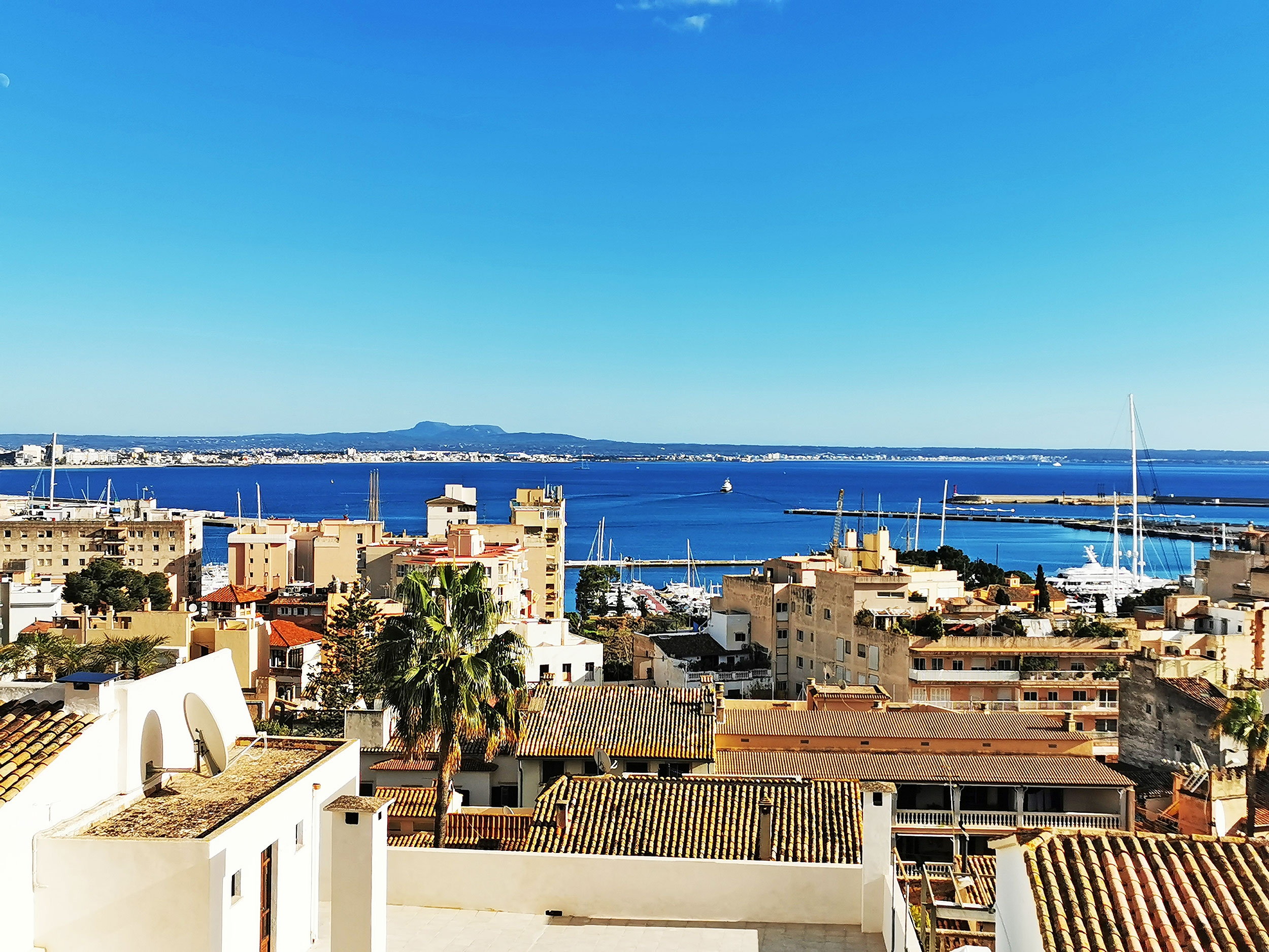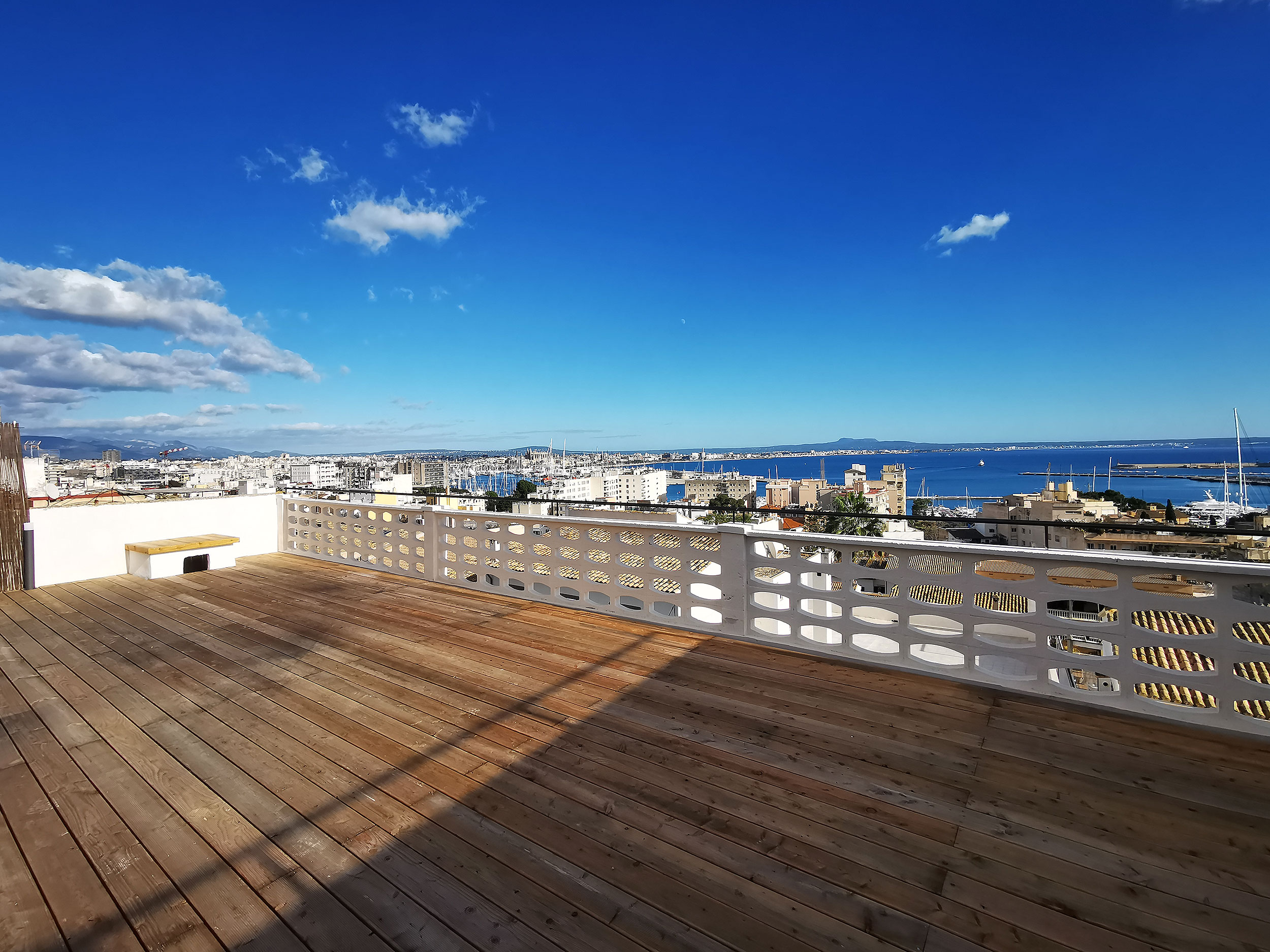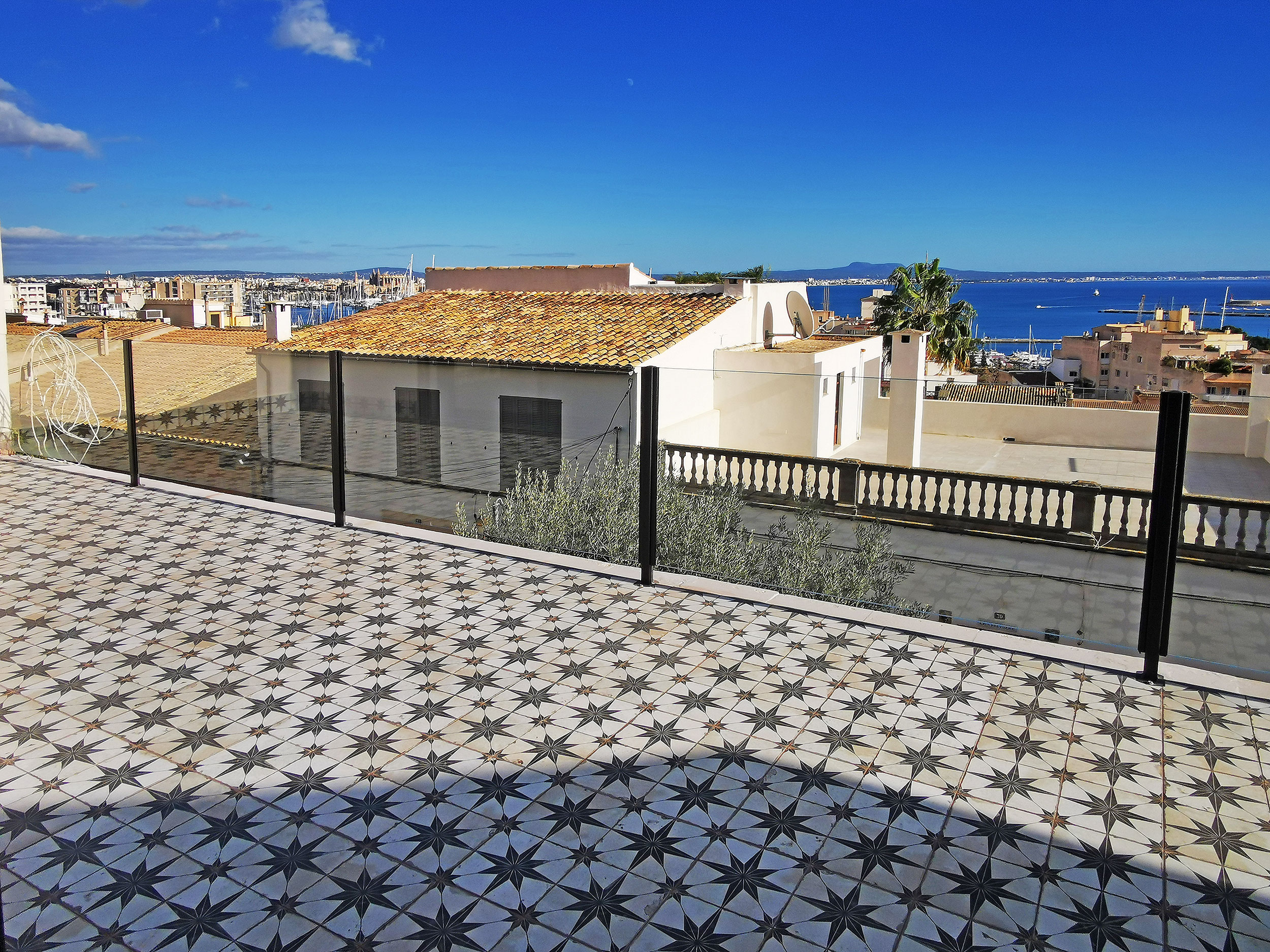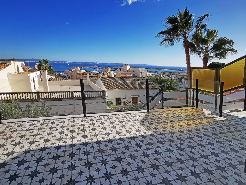 Et andet højdepunkt er den 140kvm store tagterrasse, som du kan nå via en trappe fra køkkenet. Som en del af renoveringsarbejdet var dette fuldt udstyret med trægulvbrædder og er udstyret med en privatlivsskærm. Fra tagterrassen har du en eksklusiv udsigt over Tramontana, katedralen og havet. Uanset om det er en grill med venner eller en pause fra stressende hverdag, er afslapning garanteret her. På tagterrassen er der et opbevaringsrum på ca. 6 kvadratmeter, som er udstyret med vand- og elforbindelse.