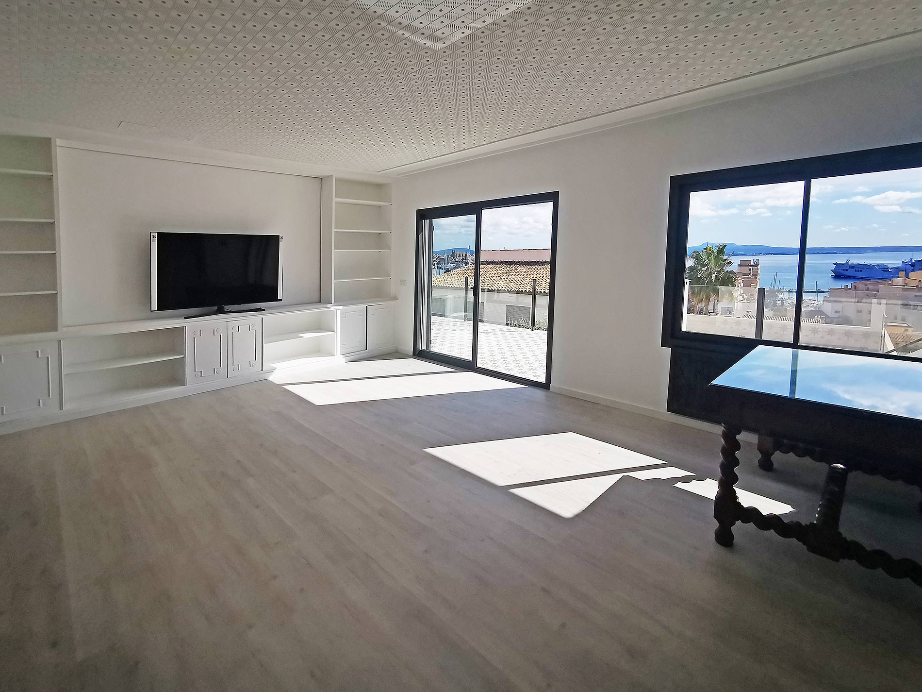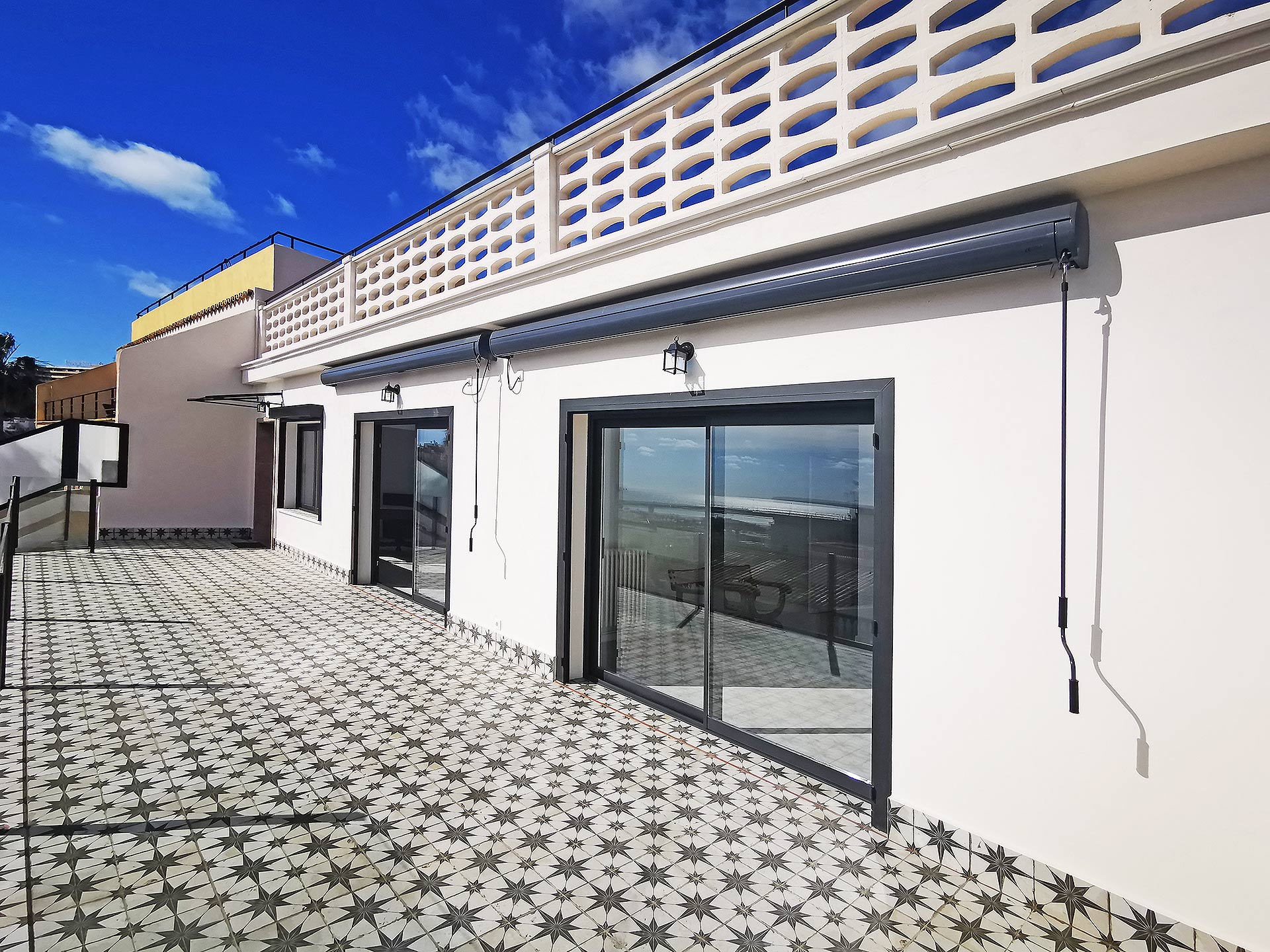 Med sin placering i det lysoversvømmede 2. sal i en meget rolig lejlighedskompleks i hjertet af El Terreno (de resterende 3 lejligheder på 1. sal lejes) med en perfekt grundplan og en spektakulær tagterrasse inspirerer denne lejlighed. Som en del af renoveringen, der blev afsluttet sidste år, blev der skabt et levemiljø af høj kvalitet. Den specielle indretning får hele lejligheden til at skinne i et lyst og venligt lys. Den åbne plan stue, spisestue og madlavning område danner hjertet af lejligheden med omkring 60 kvadratmeter. Derfra har du direkte adgang til den ca. 25 kvm store terrasse, som imponerer med havudsigt og inviterer dig til at afslutte dagen. 2 elektriske markiser giver dig mulighed for at styre solbeskyttelsen komfortabelt. Trivsel på højt niveau er garanteret her. Du vil blive overbevist af et udstyret køkken fra mærket Nolte med apparater fra mærket Miele.