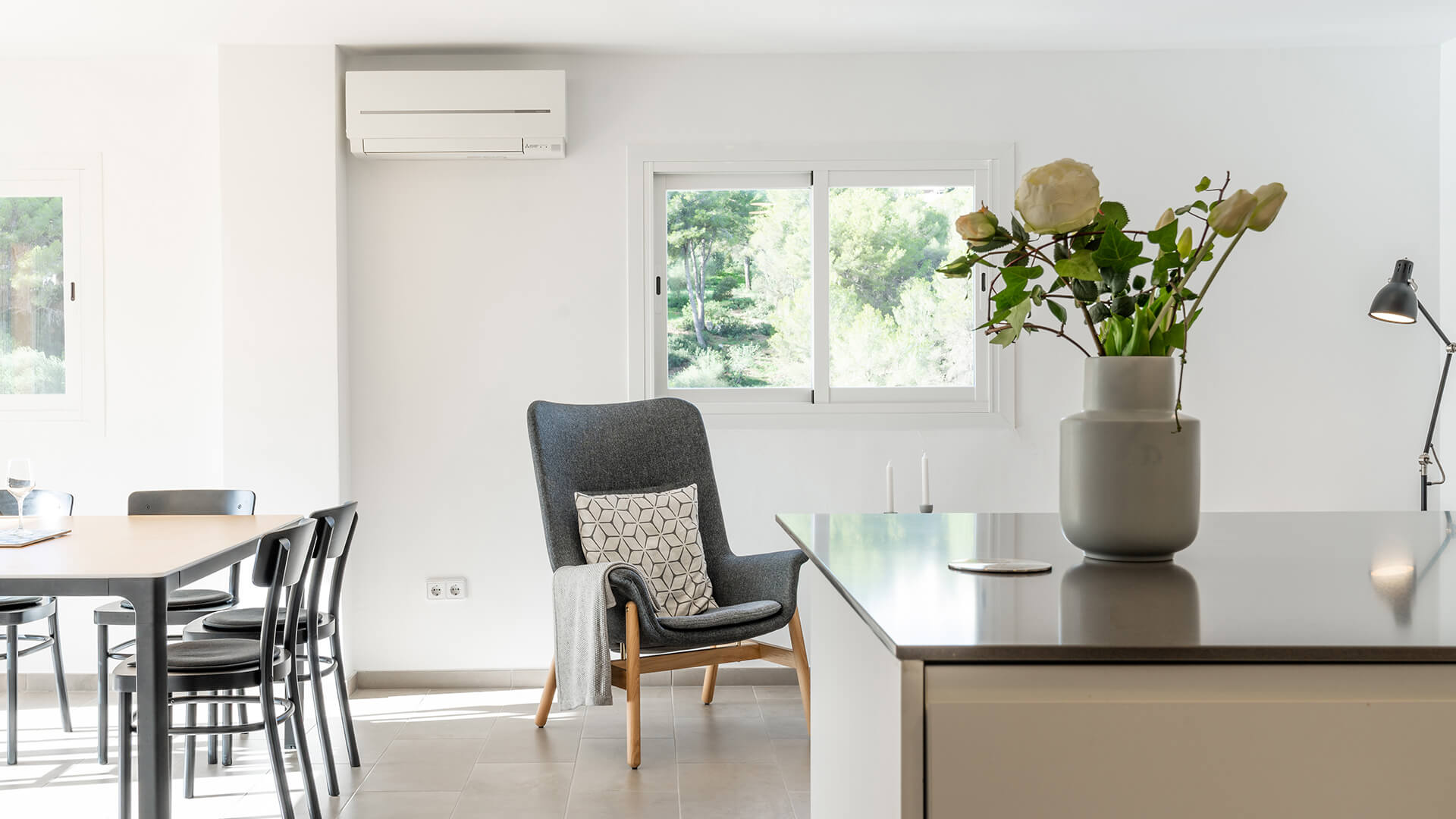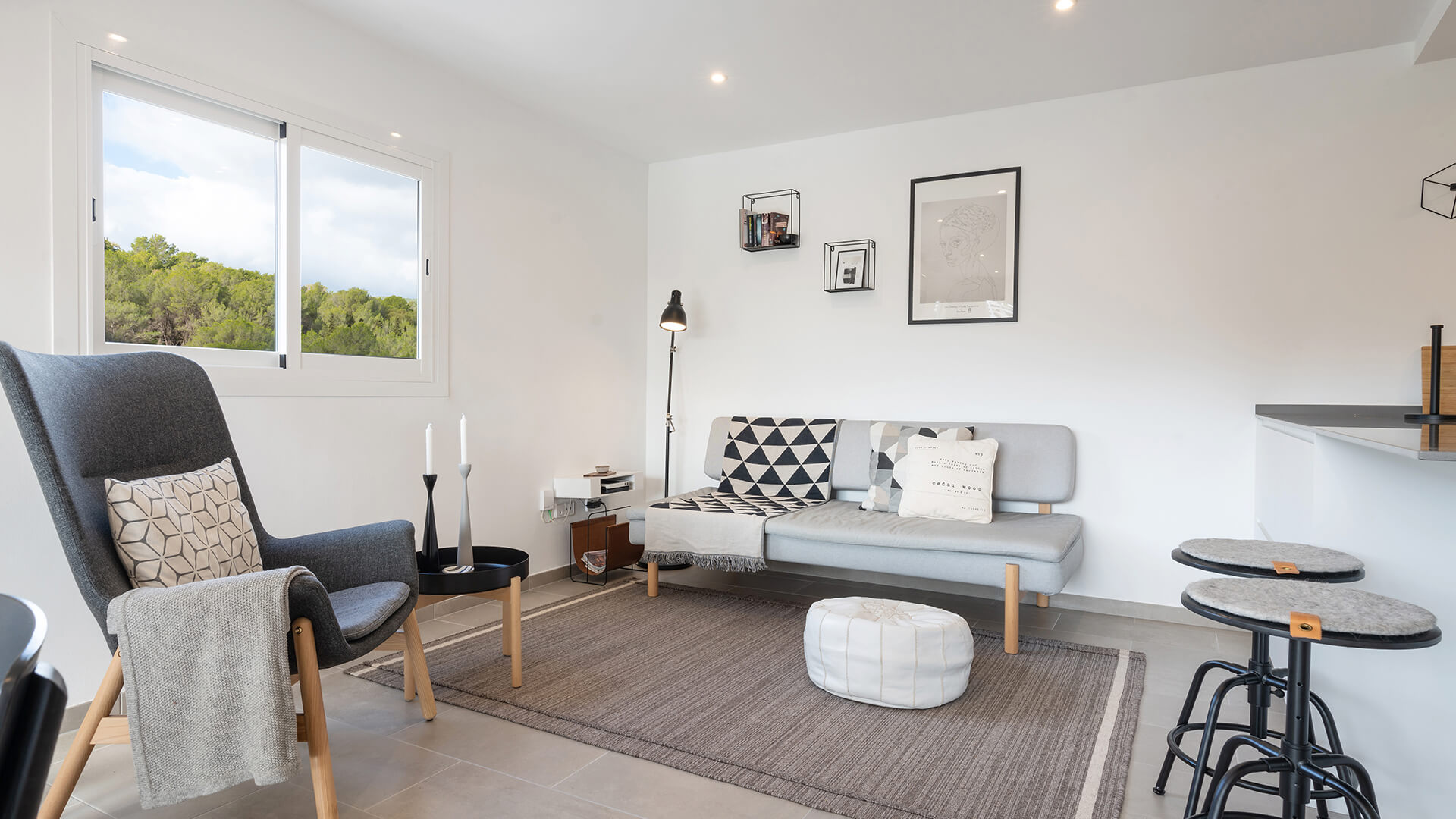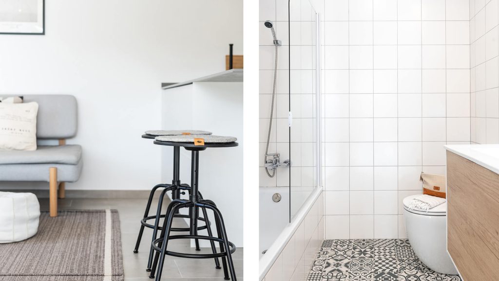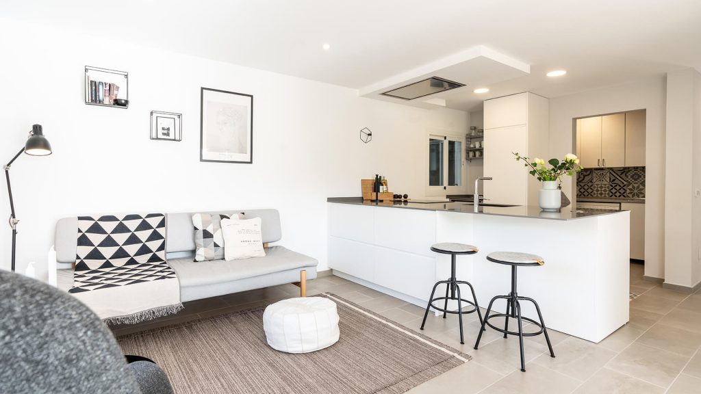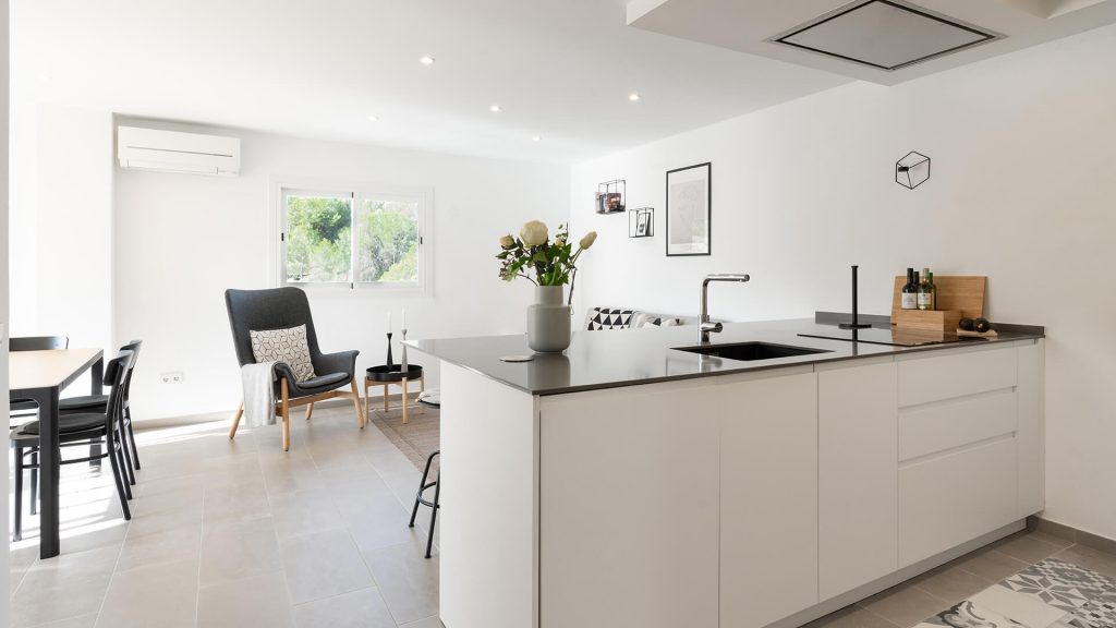 Lejligheden blev for nylig fuldstændig renoveret og skinner nu i et moderne, lyst design.