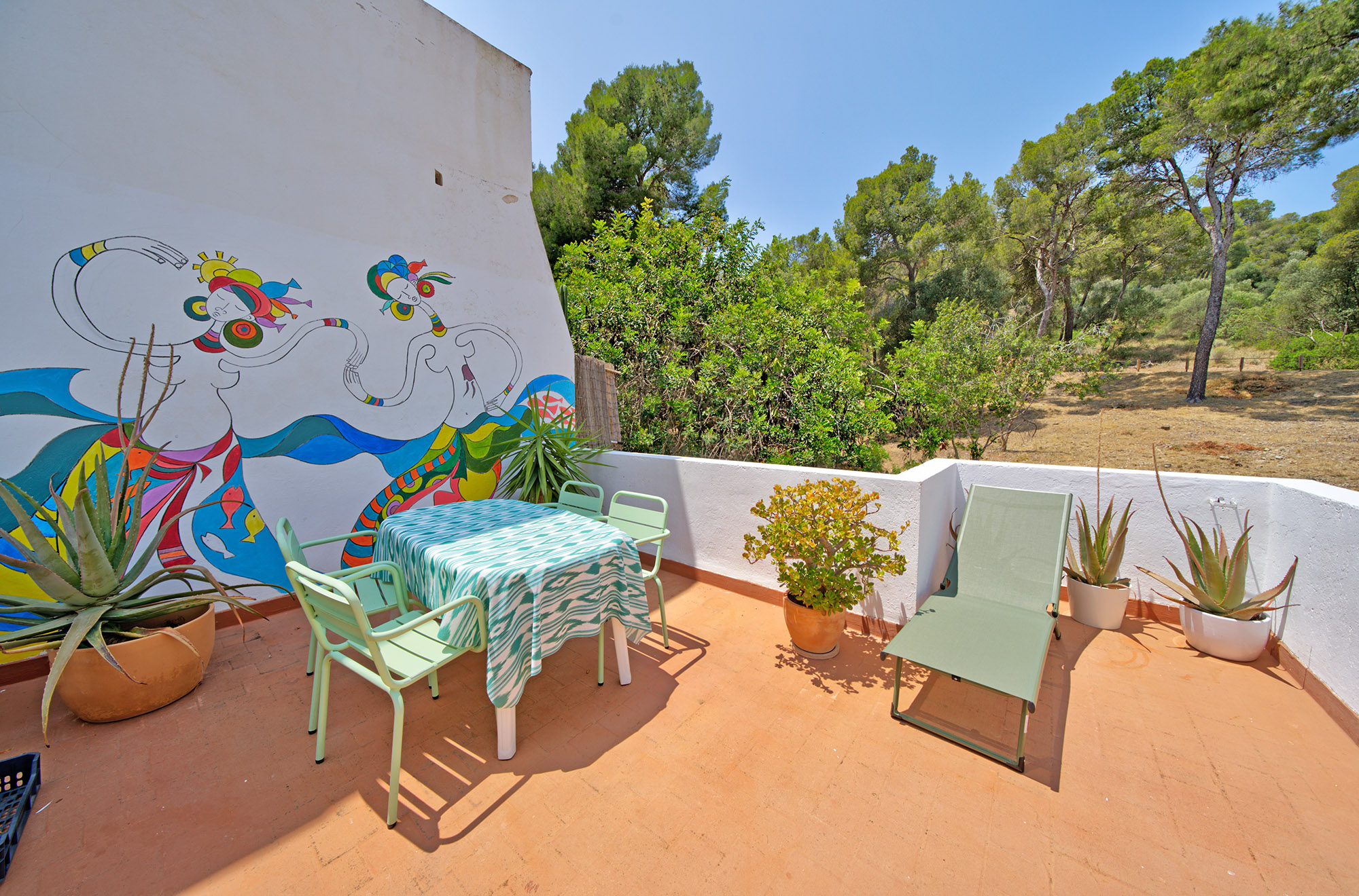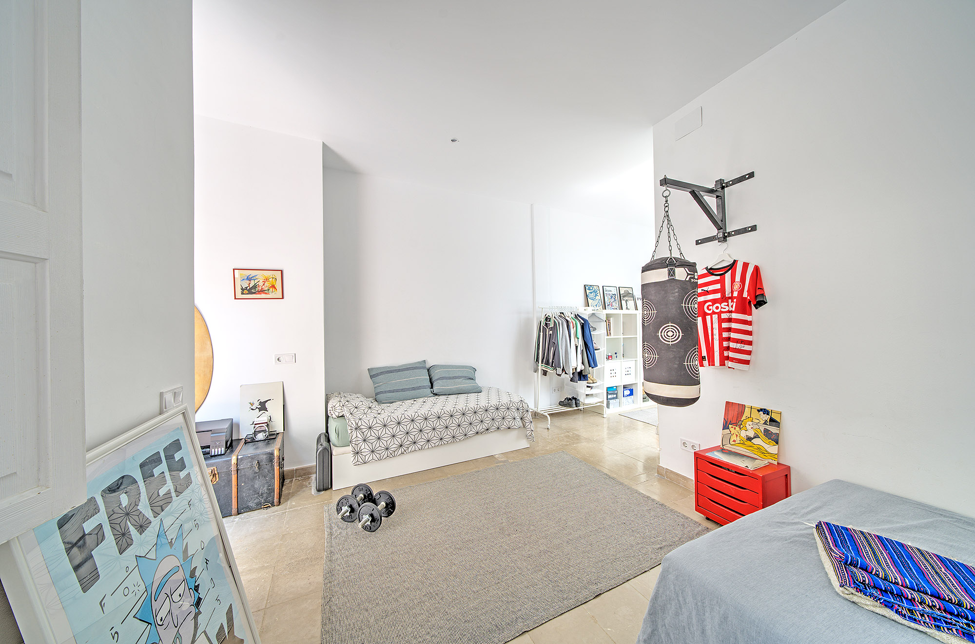 Denne perle ligger på den øverste gade i El Terreno, lige ved siden af Bellver Park. Huset imponerer med sin charme og de gamle tidstypiske elementer som trævinduer og -døre, loftsbjælker, de hydrauliske fliser og de høje lofter i alle rum.