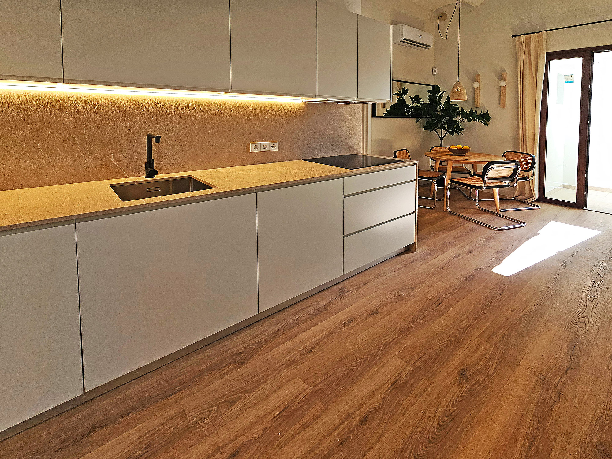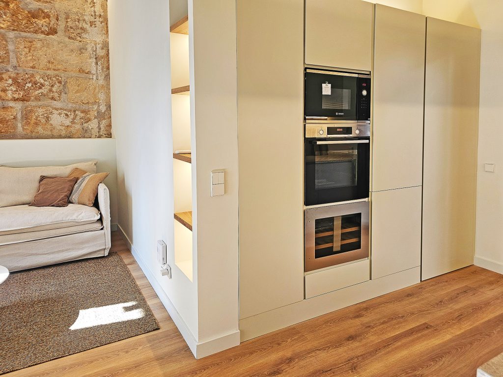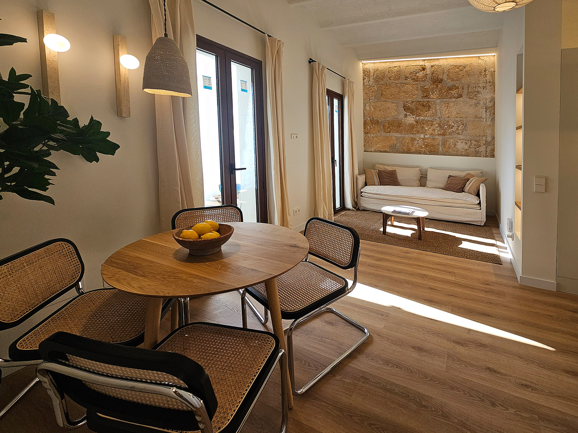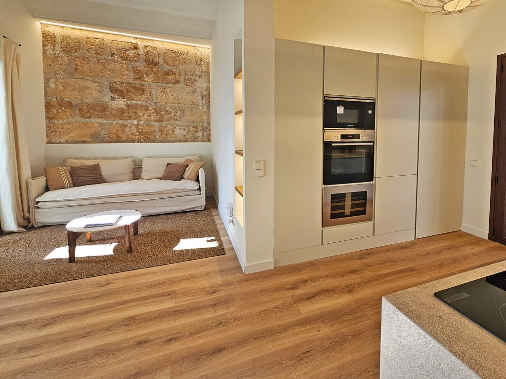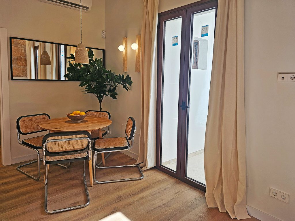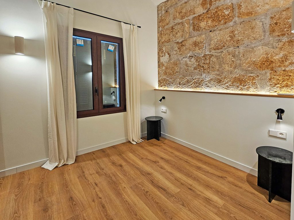 På i alt 59 m2 er der 2 soveværelser, en lys stue med åbent køkken, et badeværelse med bruser og en terrasse. Bygningen er et typisk mallorcinsk hus med få naboer, som også netop er blevet renoveret.