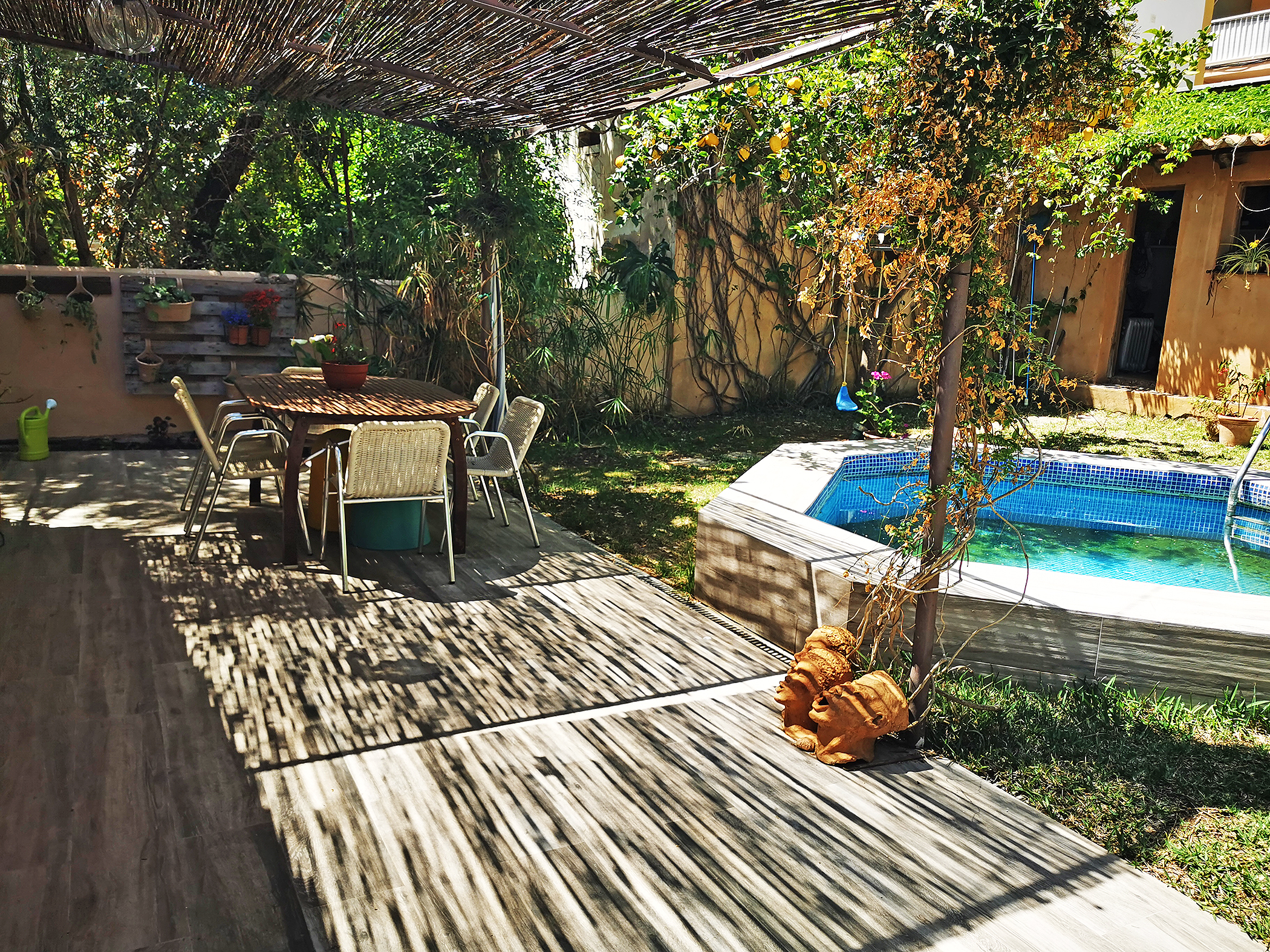 Carport for 2-3 cars, garden, covered terraces, open terraces, garden house