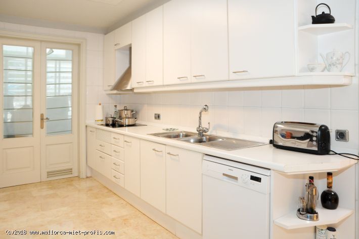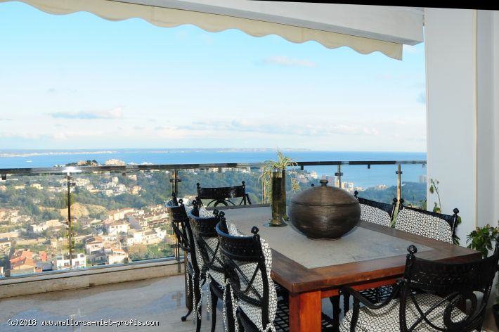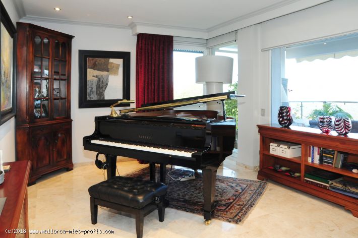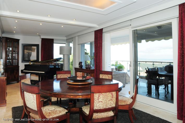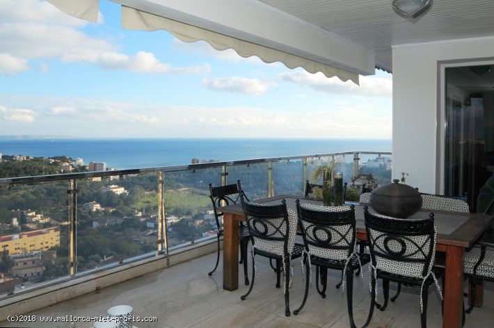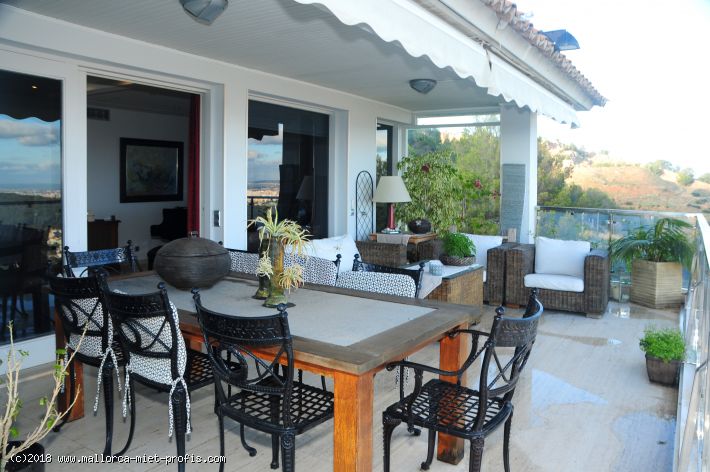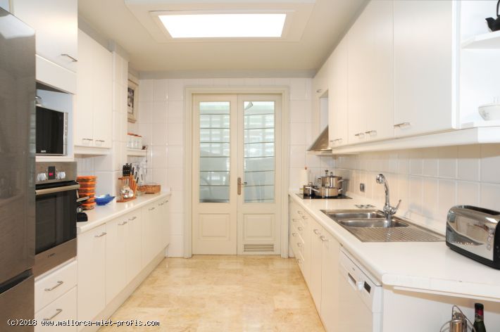 This property leaves nothing to be desired. The 225m2 penthouse is divided as follows. A large living and dining room with fireplace and access to the beautiful terrace. The kitchen with storage room and dining area is very spacious, adjacent is the laundry room. A beautiful large master bedroom with open dressing area and en suite bathroom. Another two bedrooms and two separate bathrooms, a storage room, as well as a garage parking and an outdoor parking space are part of the penthouse. The small community of 9 parties has a nice large pool and garden area, as well as rooms for billiards, table tennis and a sauna.