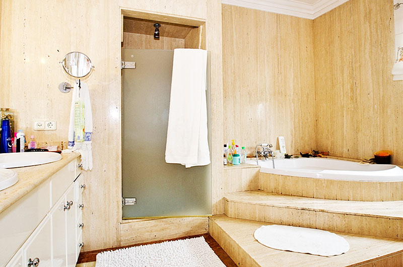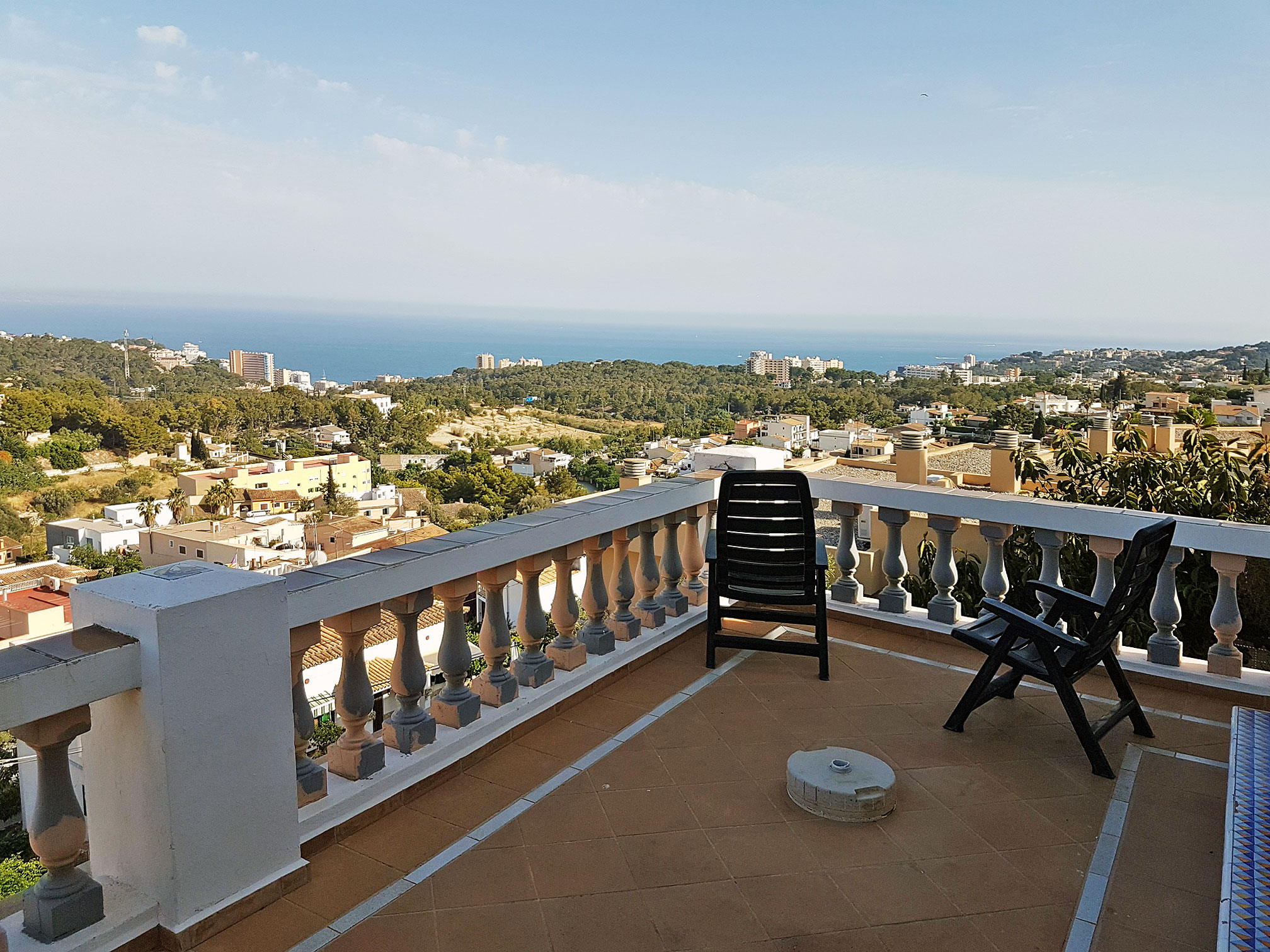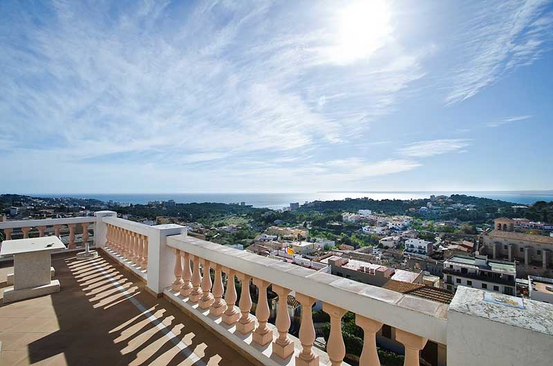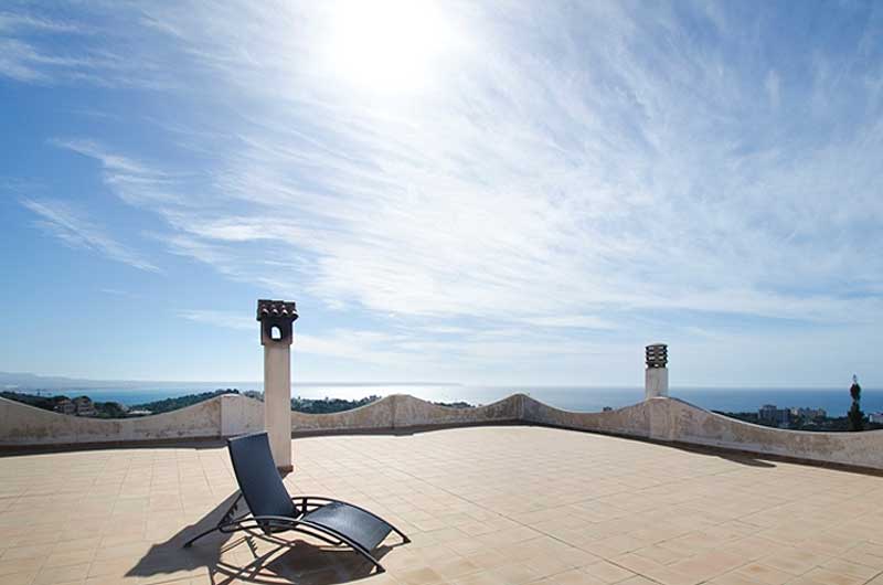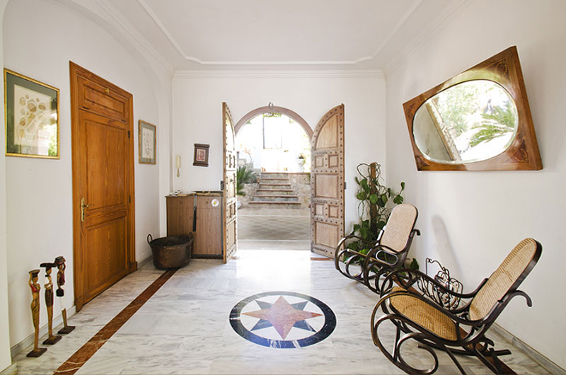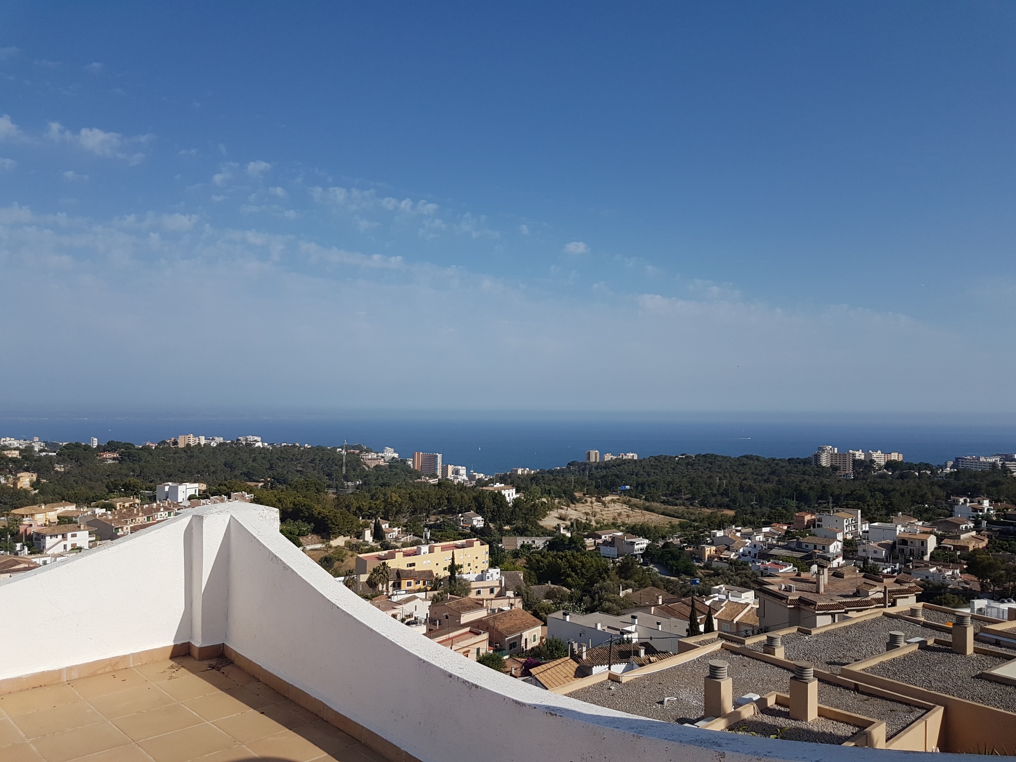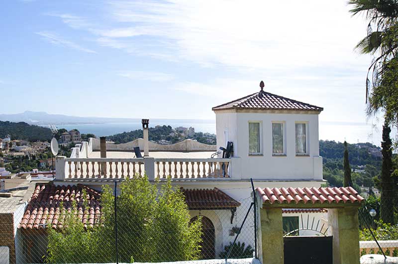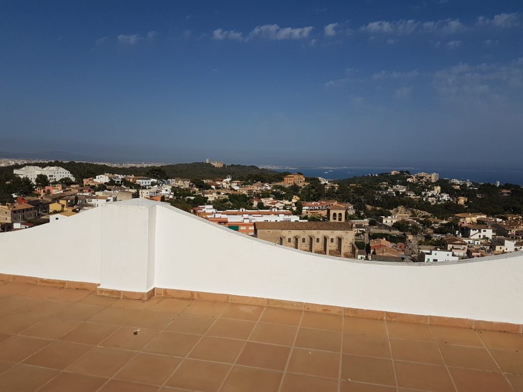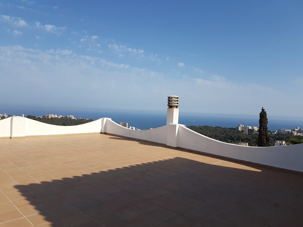 This beautiful penthouse in the upper, quiet part of Genova, directly next to a green area, but still centrally located. The penthouse stands out above all with its unique beautiful panoramic views of the sea, the city of Palma, the village of Genova with its church and the castle Bellver. In addition, there are beautiful old details as the high ceilings, the fountain and the old wooden doors. Im privaten Aussenbereich befinden sich ein grosser Swimmingpool und verschiedene sehr weitläufige Terrassenflächen. Not only from the huge roof terrace with tower room you have a unique 360o panoramic view, but also from the living room, the terrace in front, the dining room and the master bedroom.