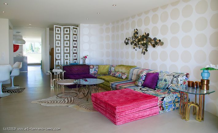 This exclusive penthouse with luxury furnishings and gigantic panoramic sea views is located in a highly sought-after complex with swimming pool and beautiful garden, in the quiet La Bonanova. The penthouse is equipped with exclusive materials, state-of-the-art technology and designer furniture and is sold fully furnished.