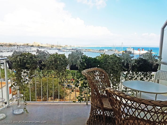 Located in the up-and-coming district of El Terreno, between the green lung of Palma, the Bellver Park and the lively Paseo, this 2-bedroom apartment with spectacular panoramic views over the port of Palma, the cathedral and the open sea.