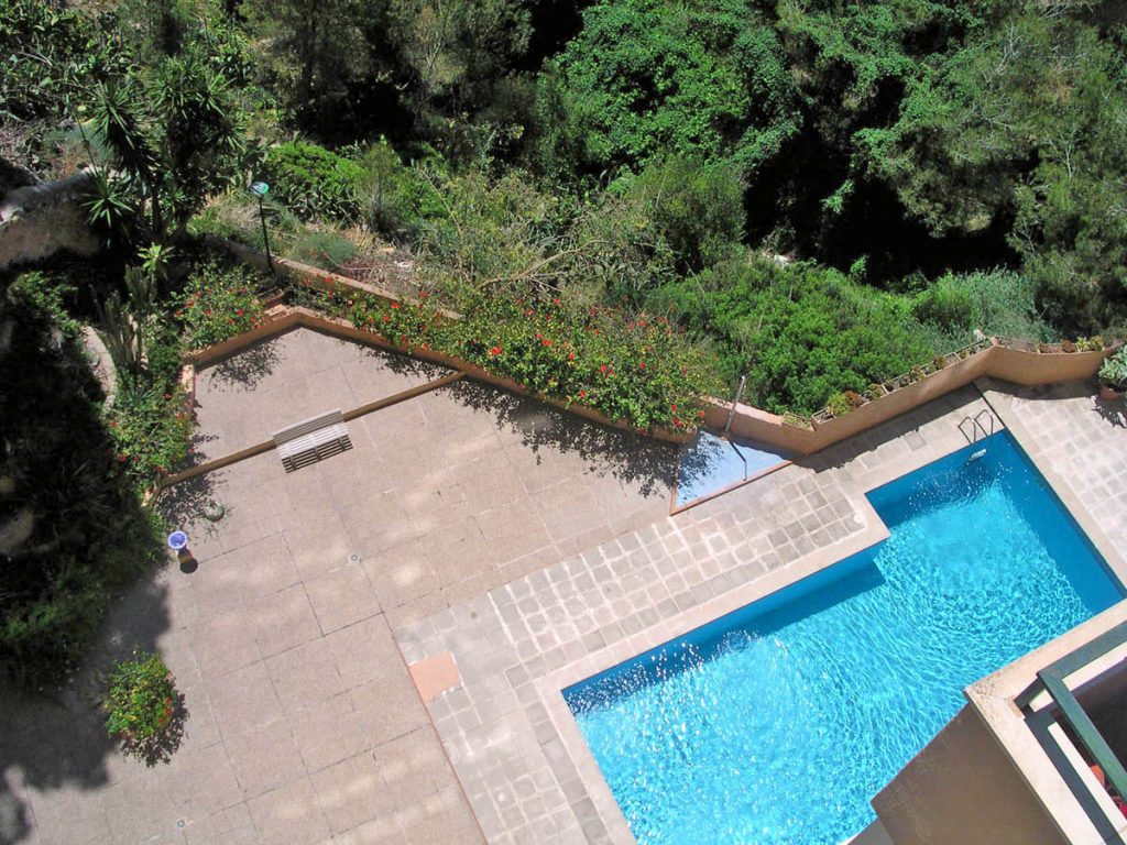 This bright apartment is located on the 7th floor of a well-kept apartment house with a doorman, elevator and communal pool right next to the beautiful Bellver Park. The location is quiet yet within walking distance to the center of Palma, sandy beaches and shopping. A property with a good price-performance ratio, ideal also as a return object for rent. With a few modernization measures, a good increase in value can be achieved. The purchase price includes the furniture and a parking space.
