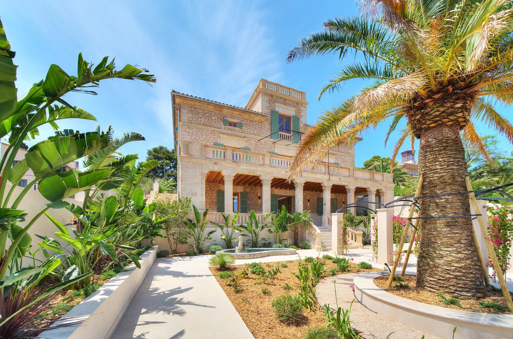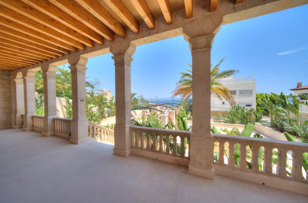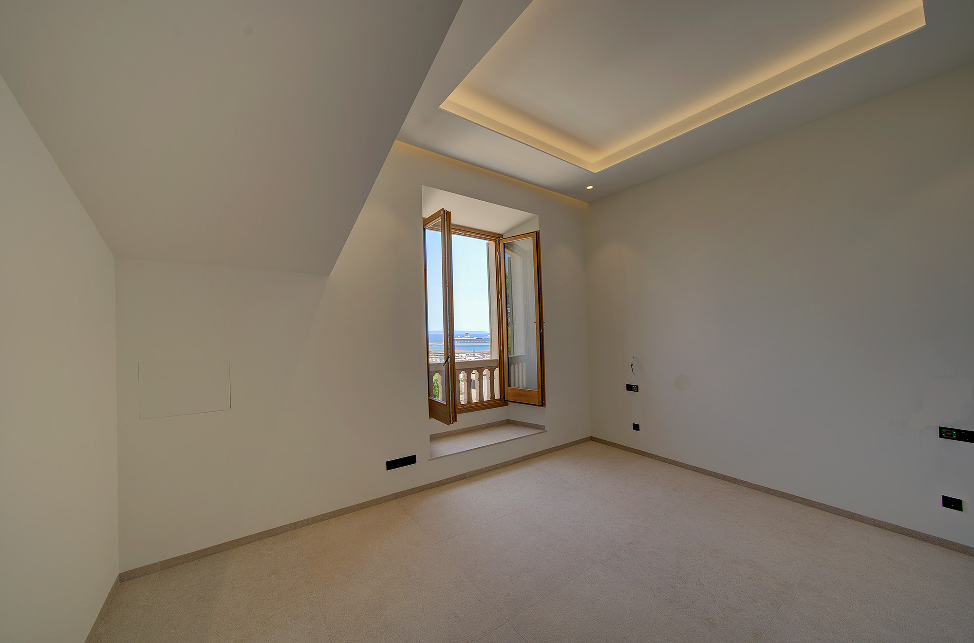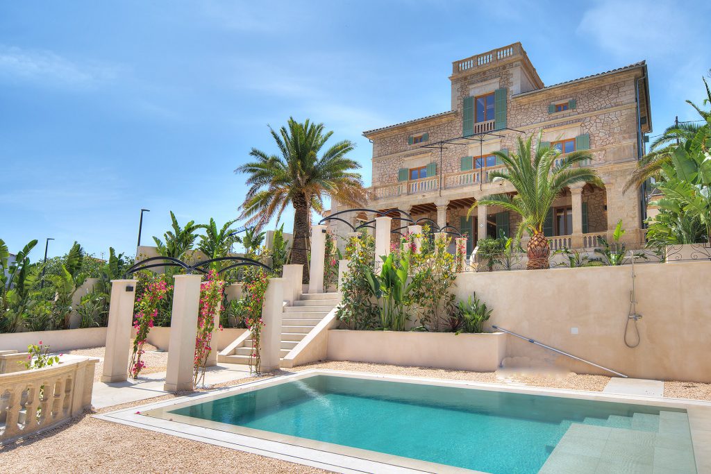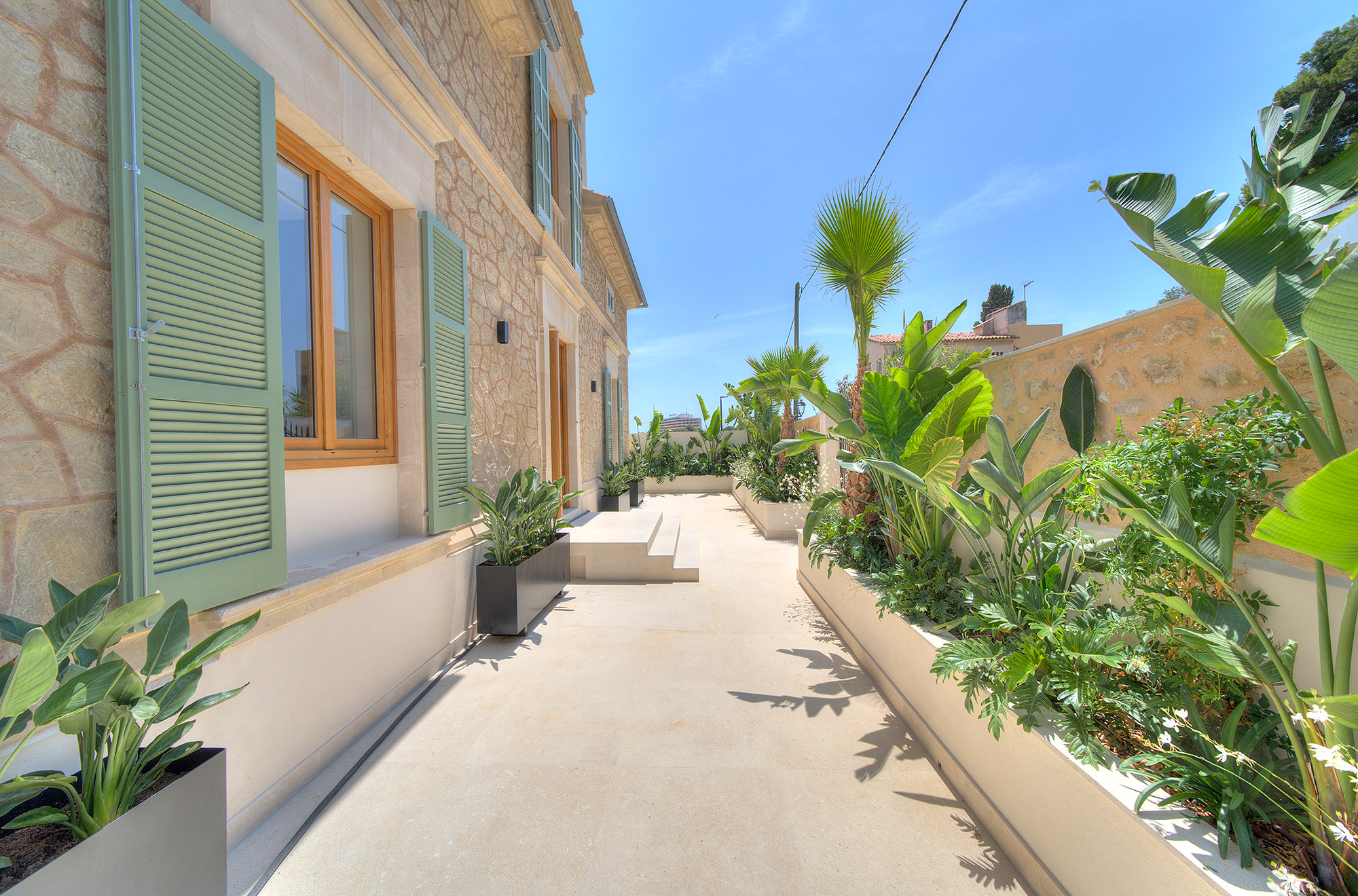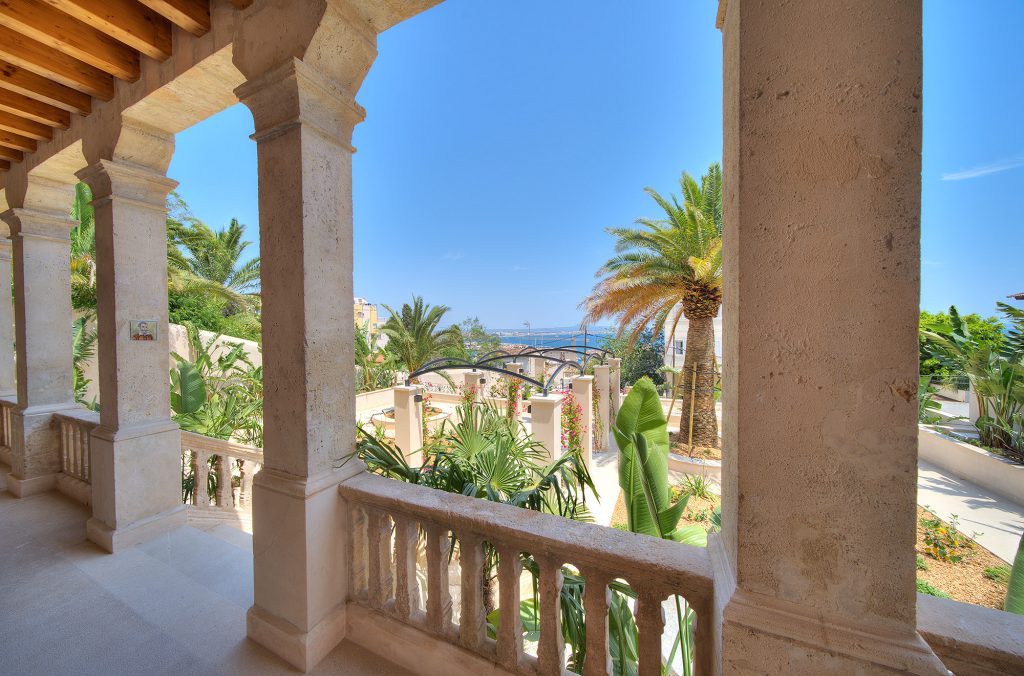 We present you this spectacular mansion in the La Bohéme district of El-Terreno, located below Bellver Castle with its magnificent castle park. It is a historic manor house on a very spacious fillet plot (accessible from 2 streets) with magnificent panoramic views over the bay of Palma and the cathedral. Extraordinary: already from the ground floor/garden there is a stunning sea view. Completion: early 2025. The house offers 613m2 of living space , distributed over 3 equal floors with sea views on each level. Layout:
