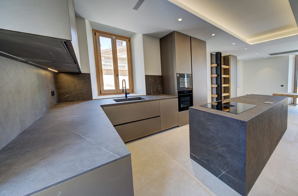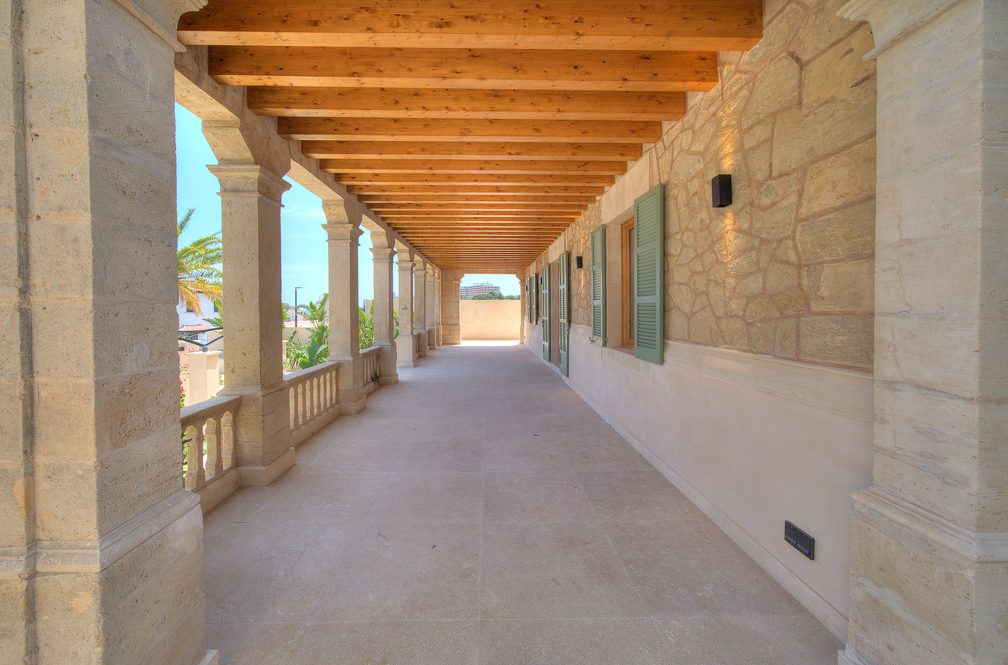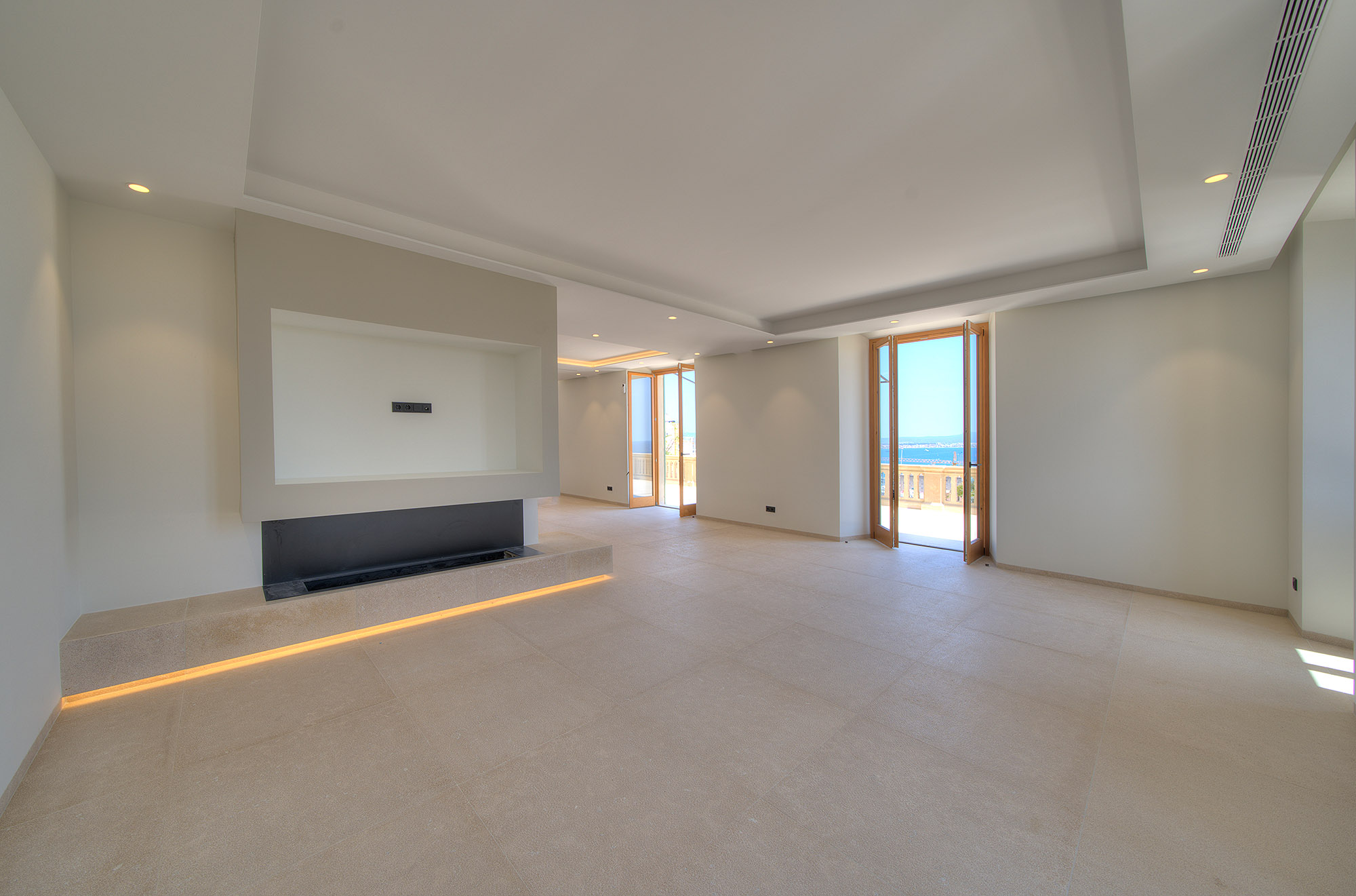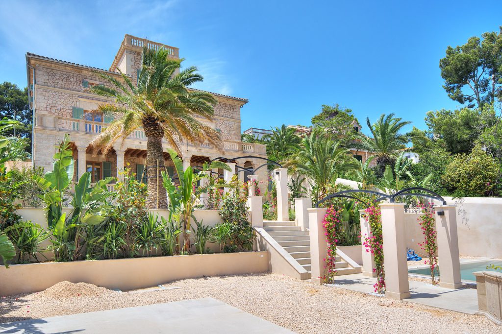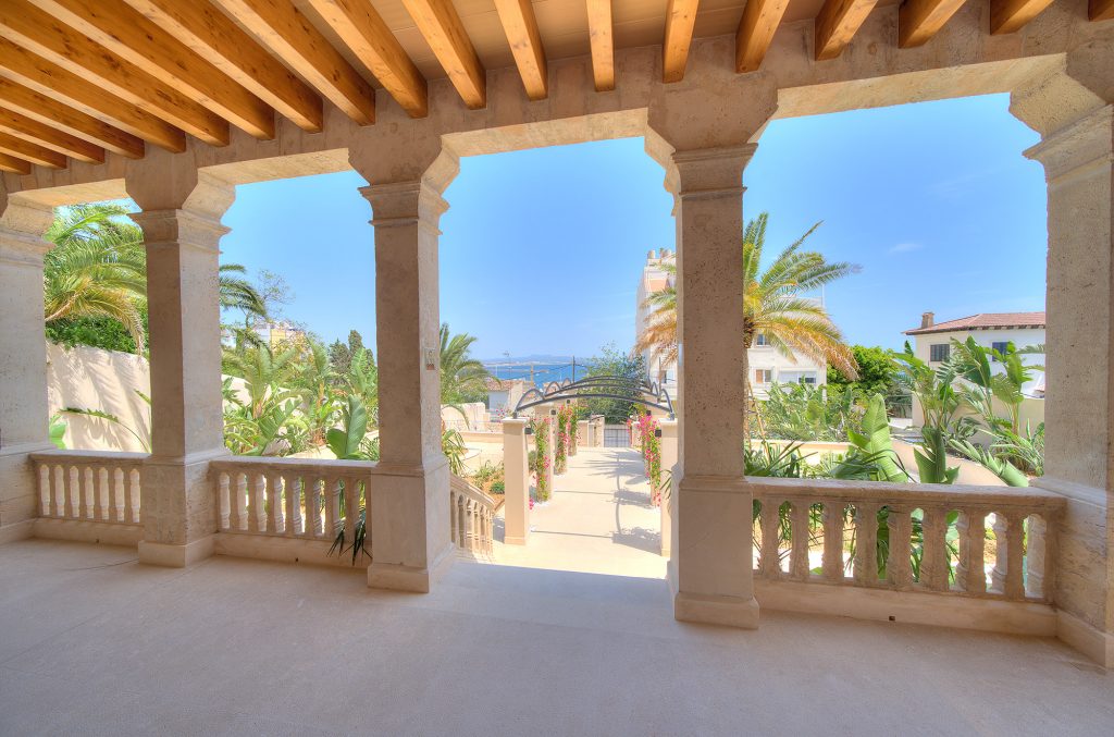 We present you this spectacular mansion in the La Bohéme district of El-Terreno, located below Bellver Castle with its magnificent castle park. It is a historic manor house on a very spacious fillet plot (accessible from 2 streets) with magnificent panoramic views over the bay of Palma and the cathedral. Extraordinary: already from the ground floor/garden there is a stunning sea view. Completion: early 2025. The house offers 613m2 of living space , distributed over 3 equal floors with sea views on each level. Layout: