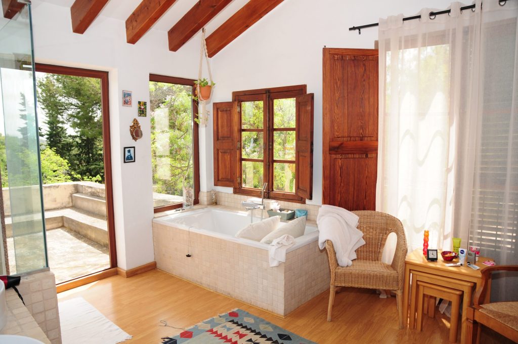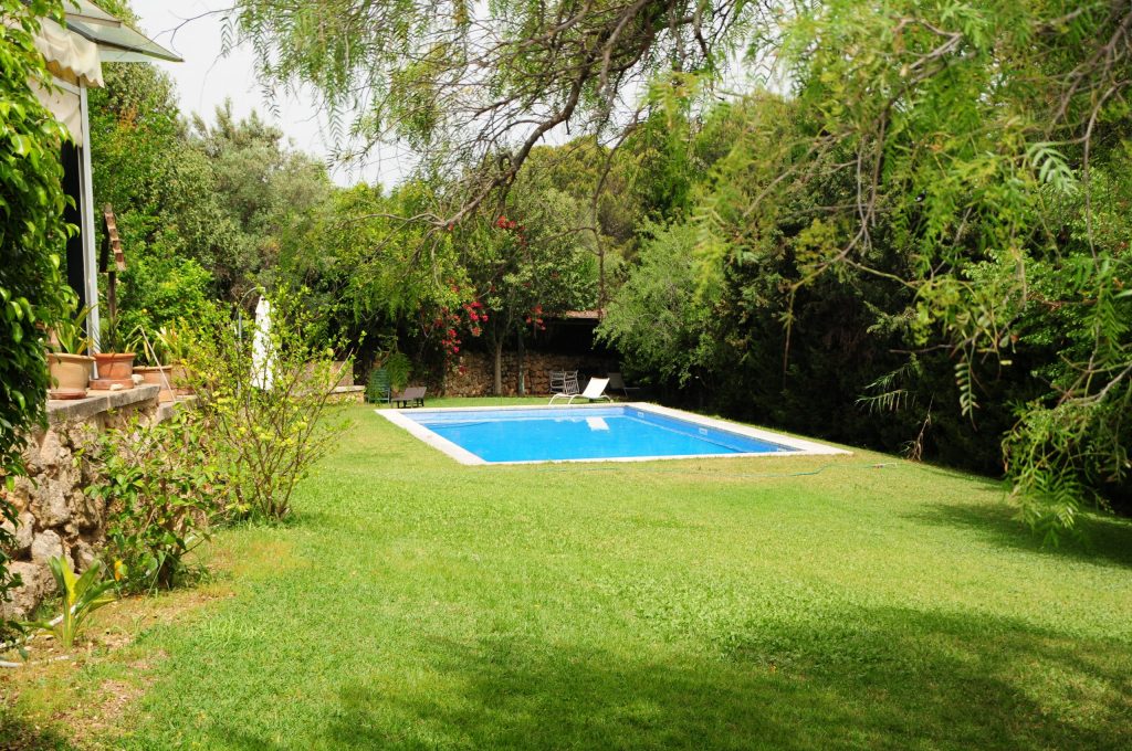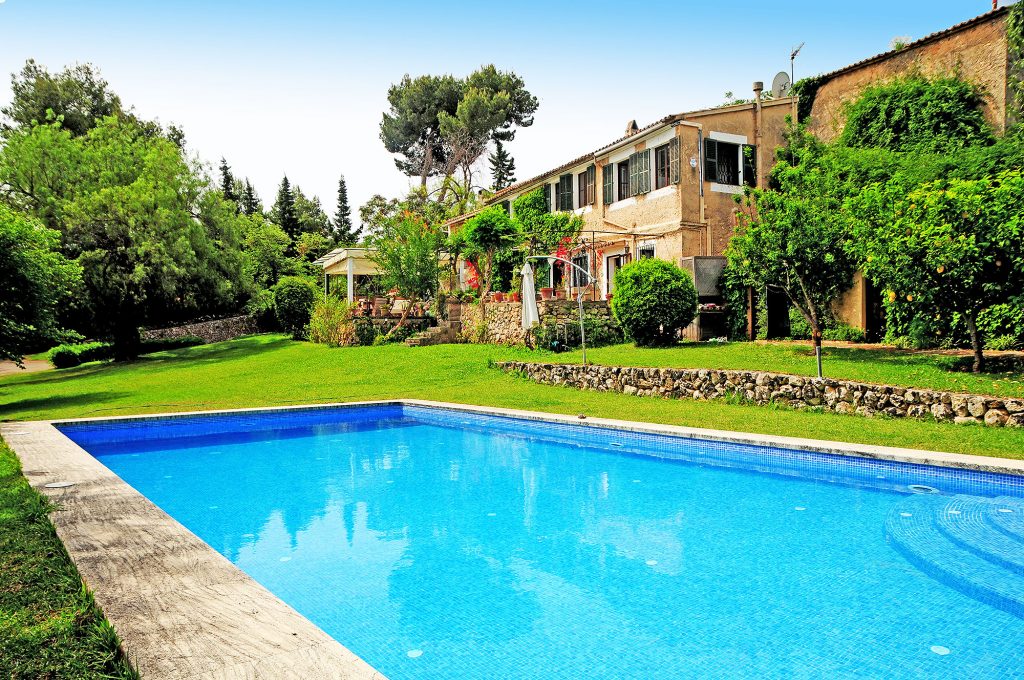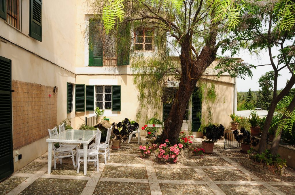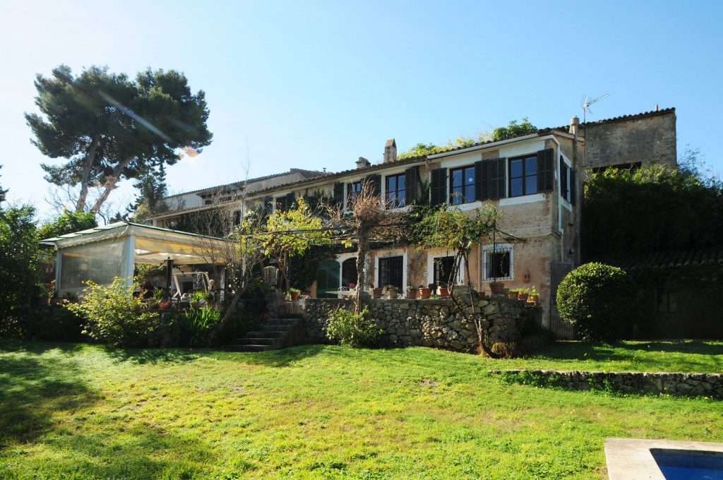This impressive finca in typical charming Mallorcan style is located in La Bonanova, Palma’s popular district by the Park Bellver and close to the center. The more than one hundred-year-old house has retained its originality and charm and fascinates with high ceilings, floor-to-ceiling wing doors and historic tiles. The beautiful view leads into the countryside and to bellver castle. The magnificent large plot offers complete privacy, in the middle of the city, a large swimming pool and a romantic mature garden.Next to the main house there is a large guest house and a guest apartment. The finca is equipped with oil central heating, air conditioning and 5 fireplaces. The double garage completes the offer.