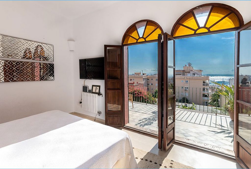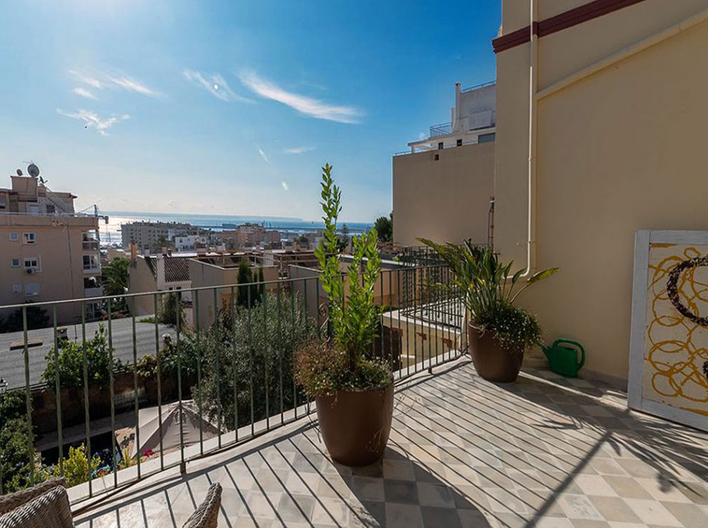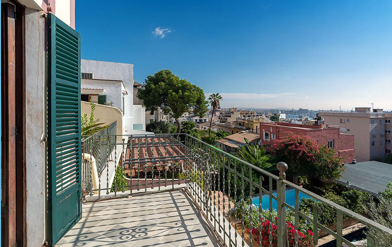 The villa was built in the 1920s in Art Nouveau style and is located in the beautiful La Bohéme district of El Terreno in Palma, between the green Bellver Park and the lively Paseo Martimo. From the first floor and the tower floor, the villa offers a wonderful panoramic view of the sea, the harbour and also the cathedral.