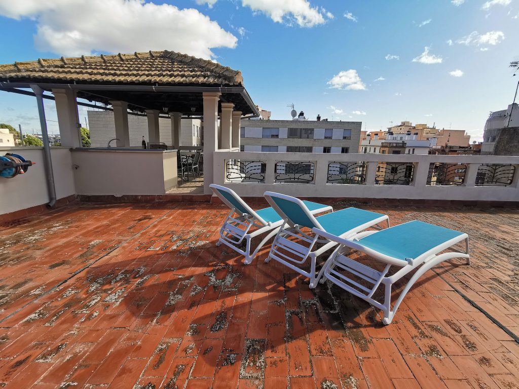 The emblematic property currently has 5 spacious residential units, each with kitchen and living room, 2 bedrooms, bathroom, all recently renovated. The highlight of the property is the large roof terrace with panoramic sea views and views of the cathedral and Bellver Castle.