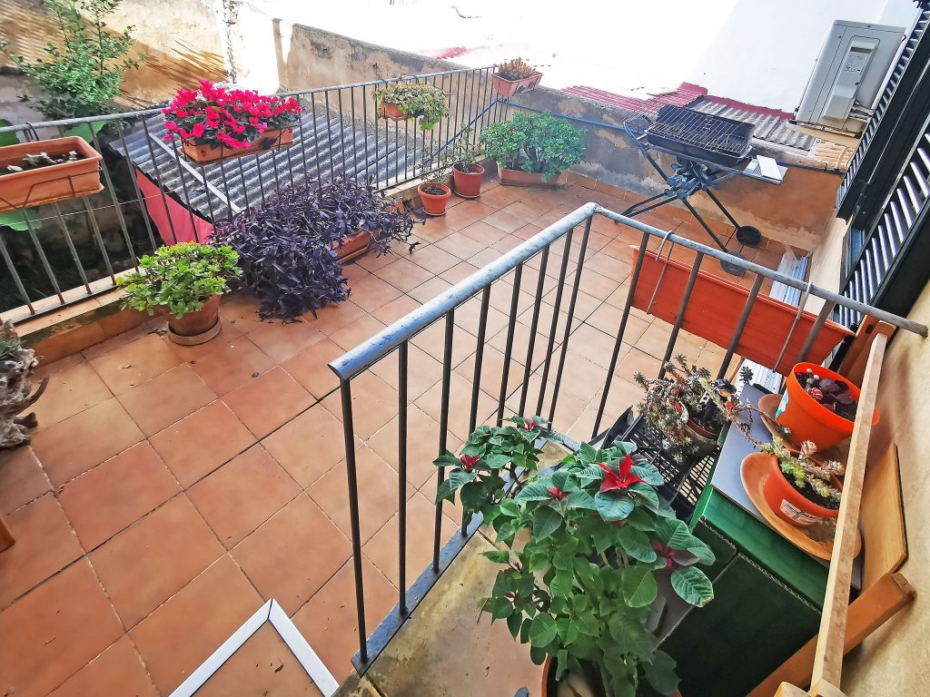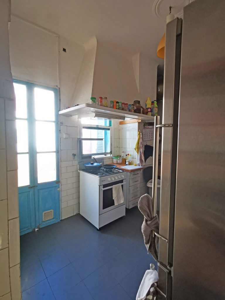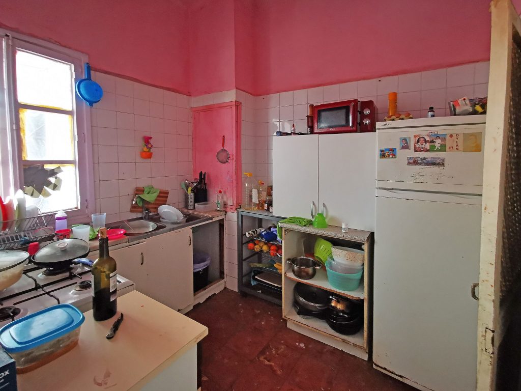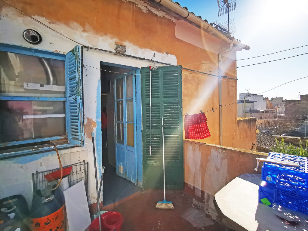 First floor 2: very much in need of renovation, 69m2, 2 bedrooms, 1 bathroom, kitchen, living room, covered terrace