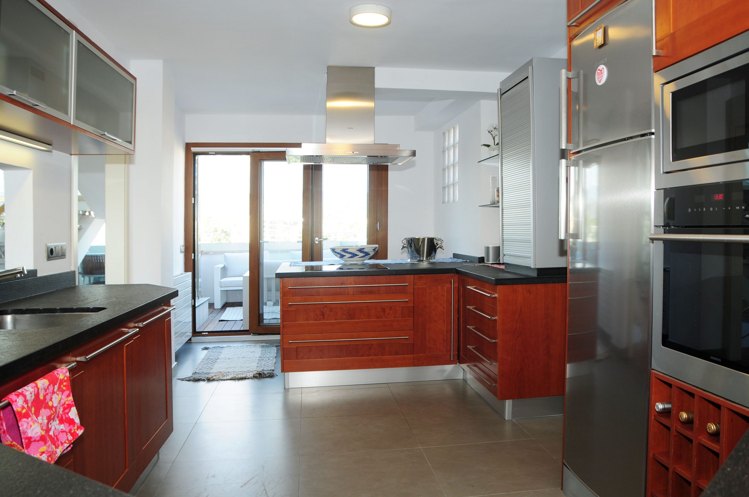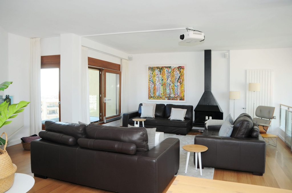On a living area of 175m2 plus 55m2 of private terraces are located on the entrance level of the dining area with adjoining kitchen and terrace as well as utility room and guest toilet. On the lower level are the total of 3 bedrooms and 2 bathrooms, one of them en suite and another sun terrace. On the upper level of the Atico is the spacious open plan living area with fireplace and a toilet. The property is of high quality equipped and is sold furnished. The well-maintained residential complex has a lift and parking.