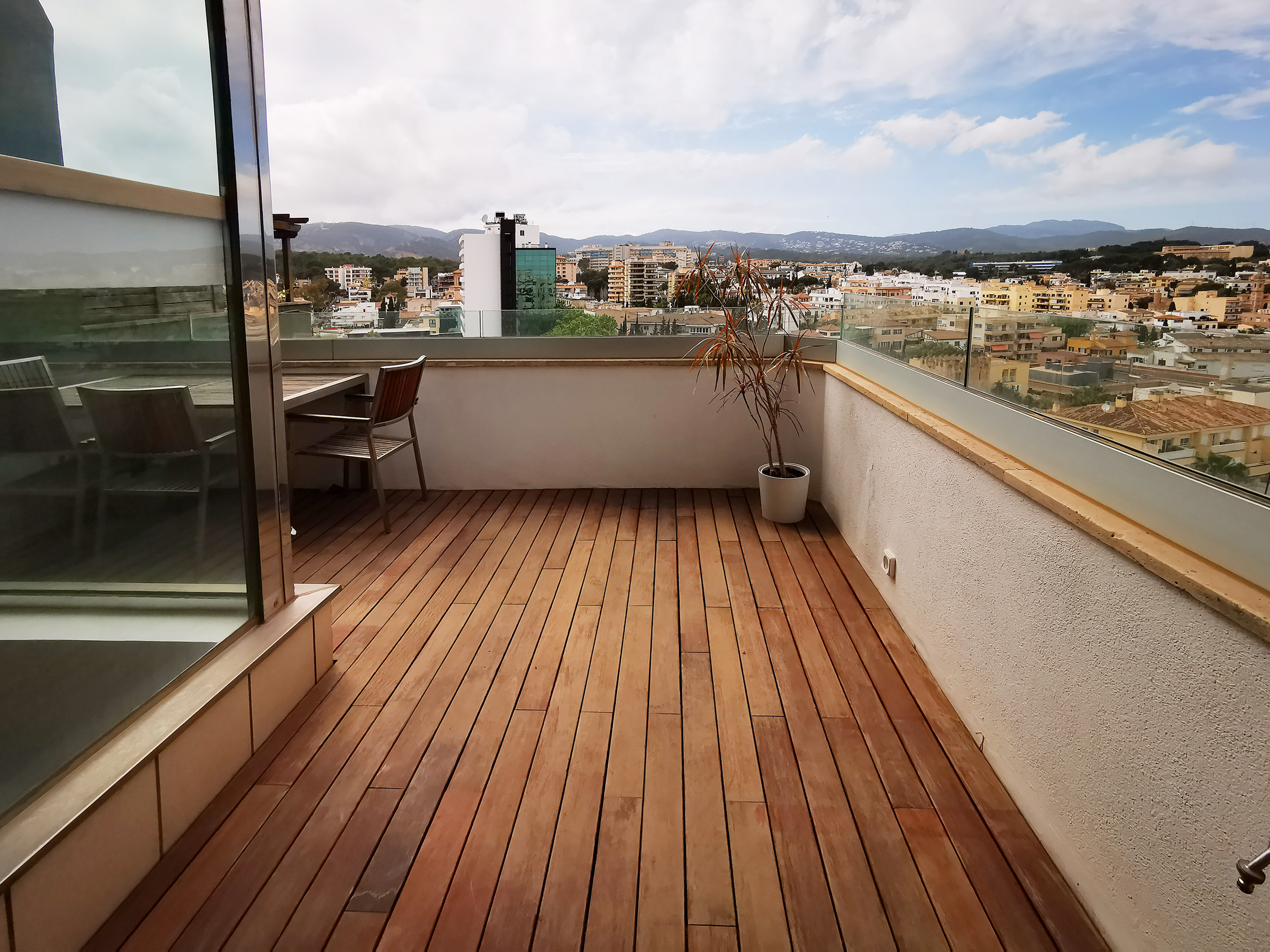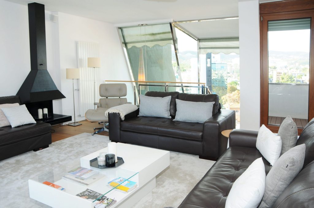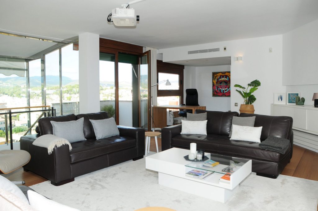 This impressive three-storey penthouse is in a prime location in Son Armadams. The Santa Catalina district and Bellver Park are within walking distance. The penthouse features architectural details, large panoramic windows and panoramic views of the sea, harbour, cathedral, city and Bellver Park.