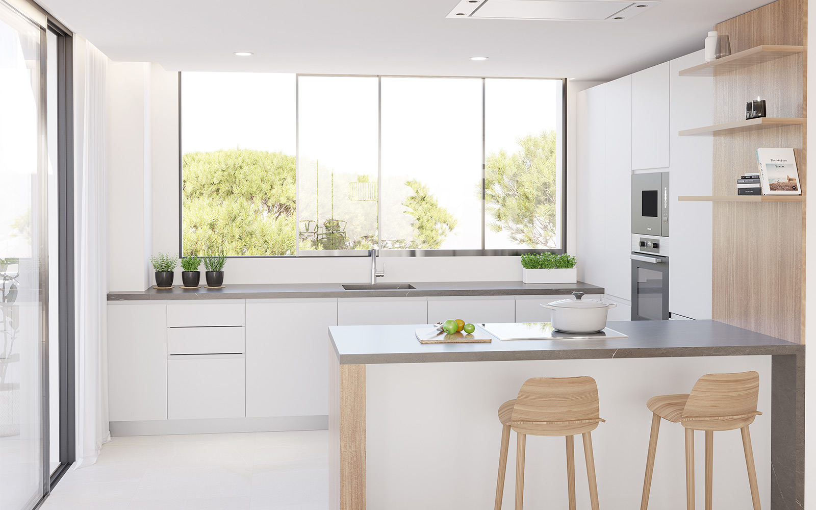 In addition, the penthouse offers 3 terraces on the living level, open and covered.