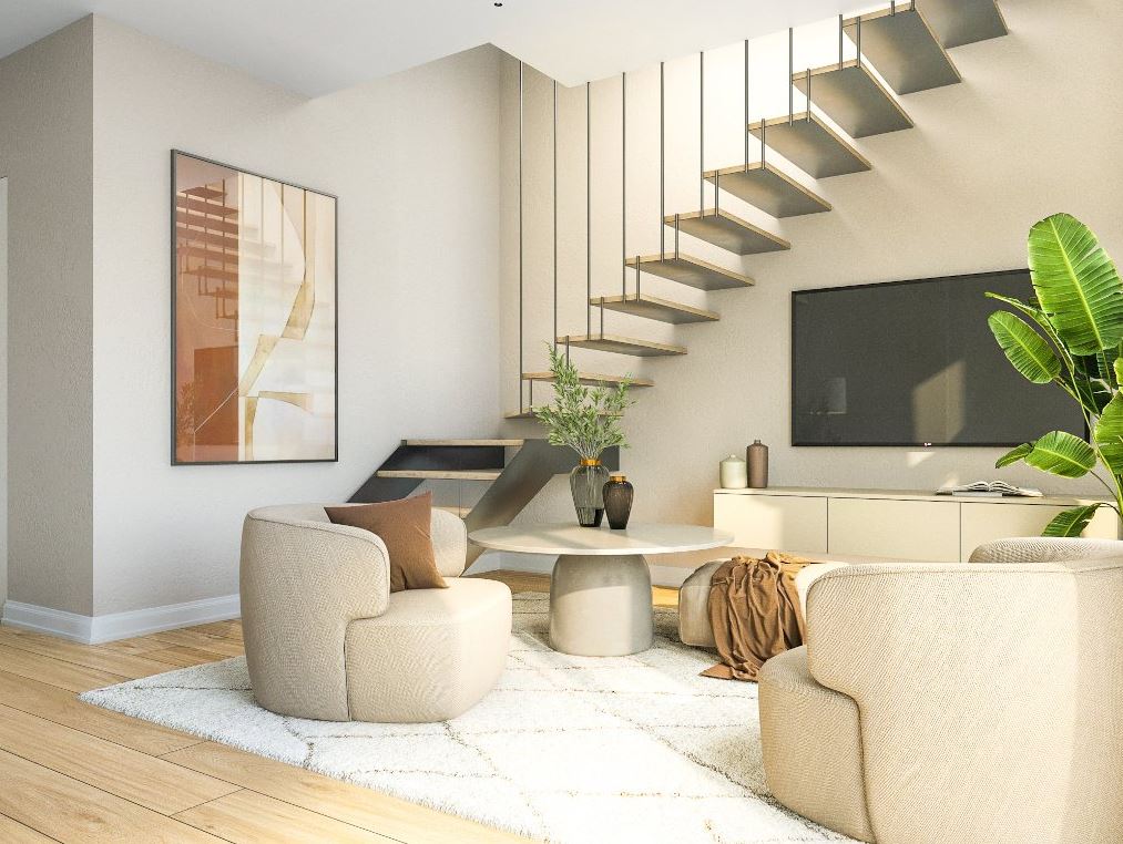 Distribution: 3 bedrooms, 2 bathrooms, living-dining room with open kitchen, patio, roof terrace with pool, underground parking space.
