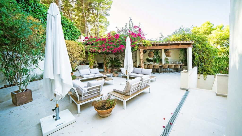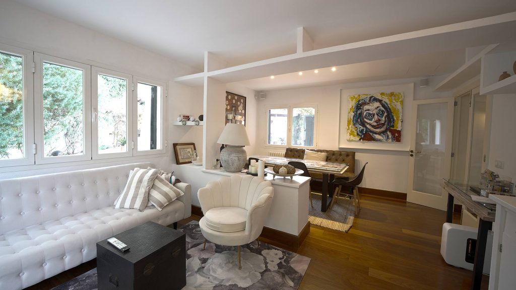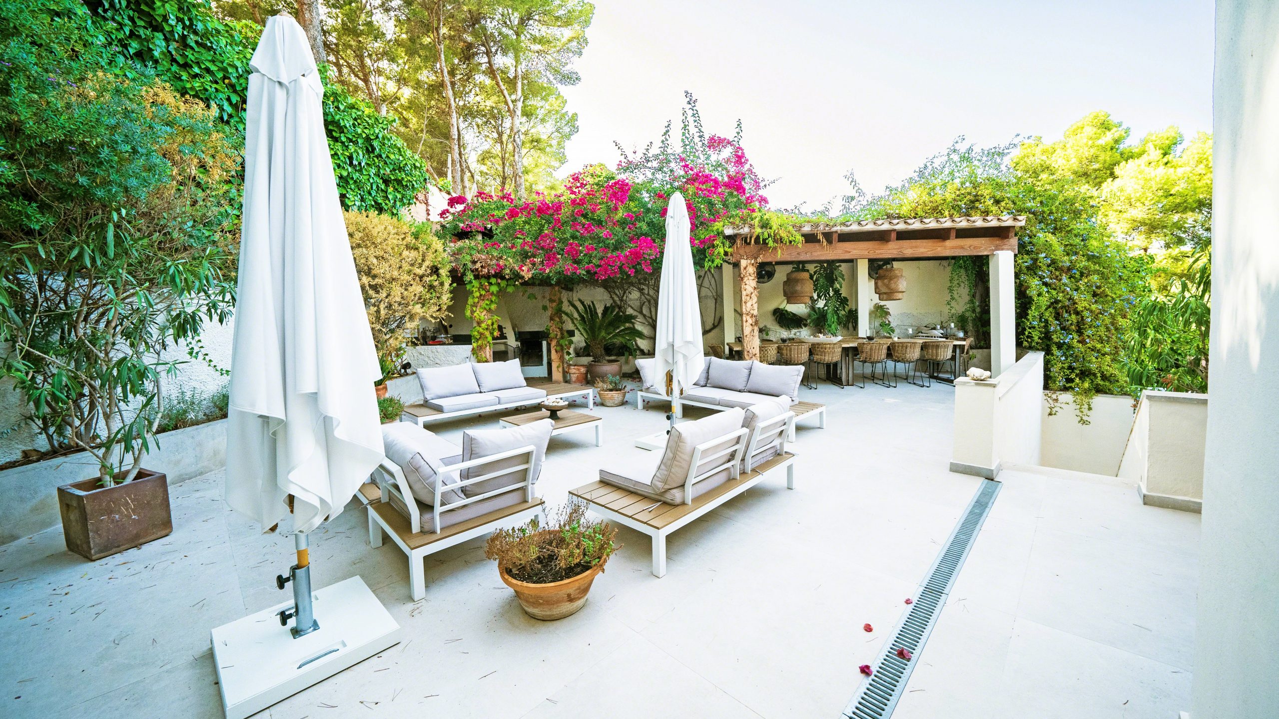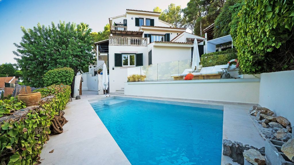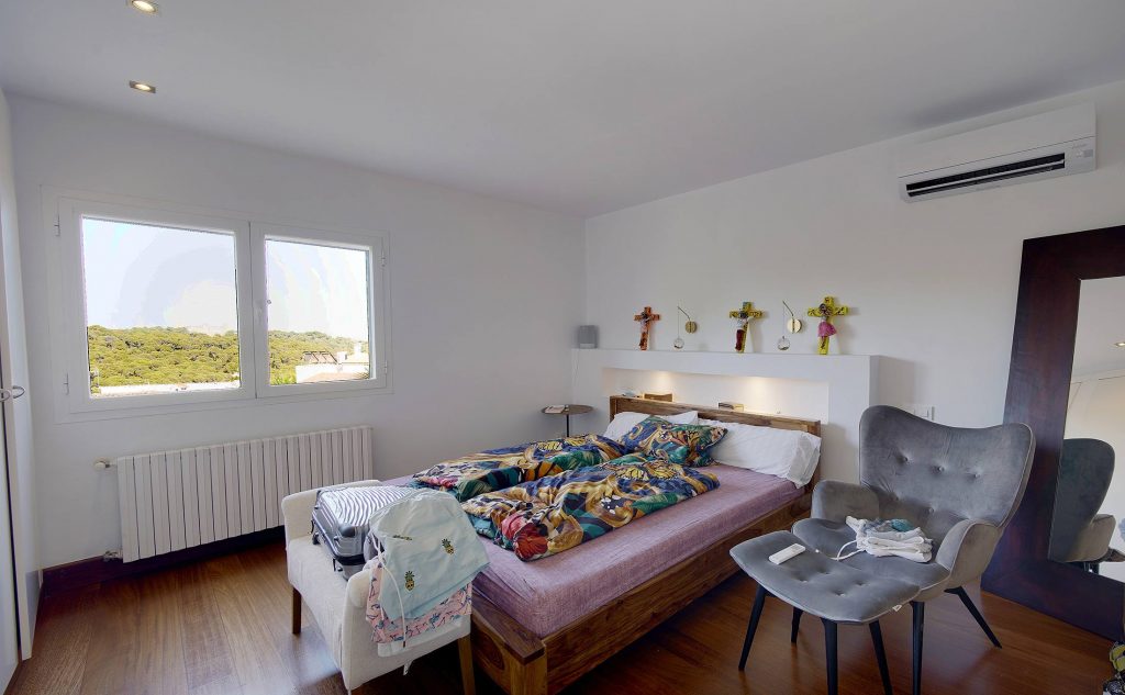 This villa was built in Mallorcan style and equipped inside with modern comforts such as air conditioning and heating. It is located in a prime location in Genova overlooking Bellver Park and the sea from the first floor. Spread over a total of 320 m2 are the main house with 2 floors, the guest apartment and several terraces with green area, barbecue, and the pool area.