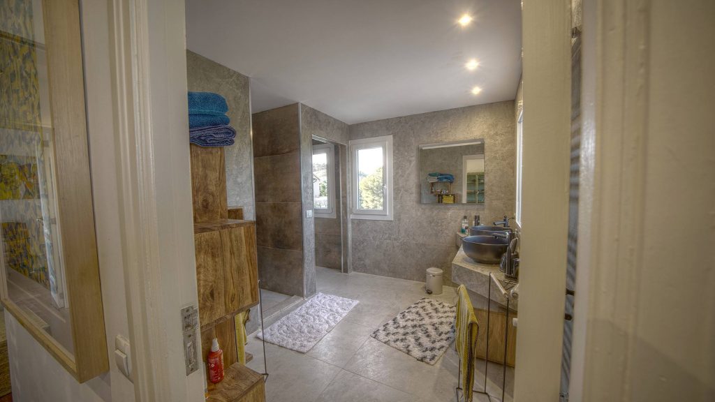 The villa is fully equipped with air conditioning why and cold, gas central heating and alarm system.