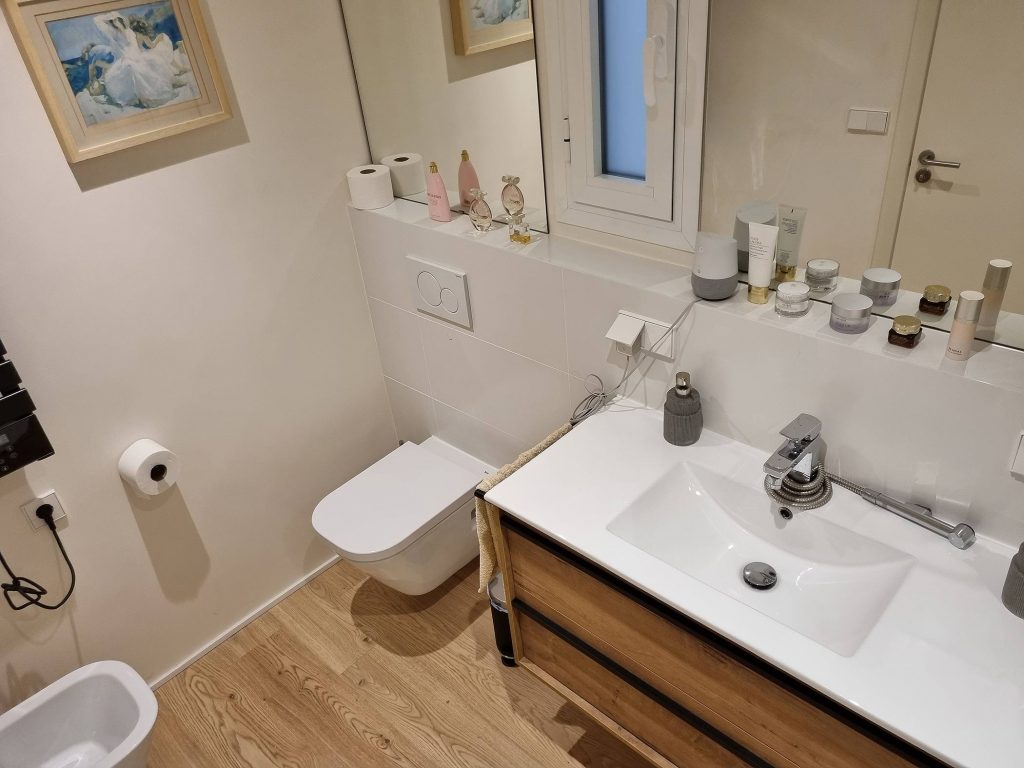 The apartment has been renovated with high class materials, including all electrical and water pipes. Parquet floors, air conditioning, heating. Parking in the building. The well-kept building has a lift.