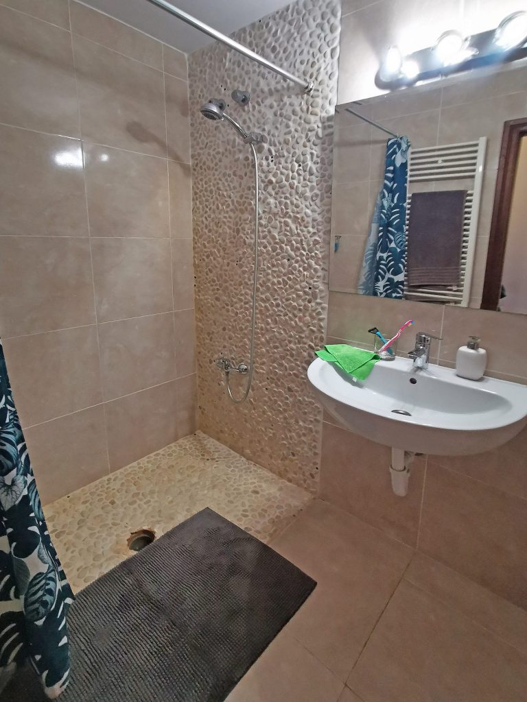 In total there are 3 bedrooms, 2 bathrooms, a living room with fireplace, a kitchen with pantry, a laundry room and a terrace. All rooms have city gas heating and air conditioning.