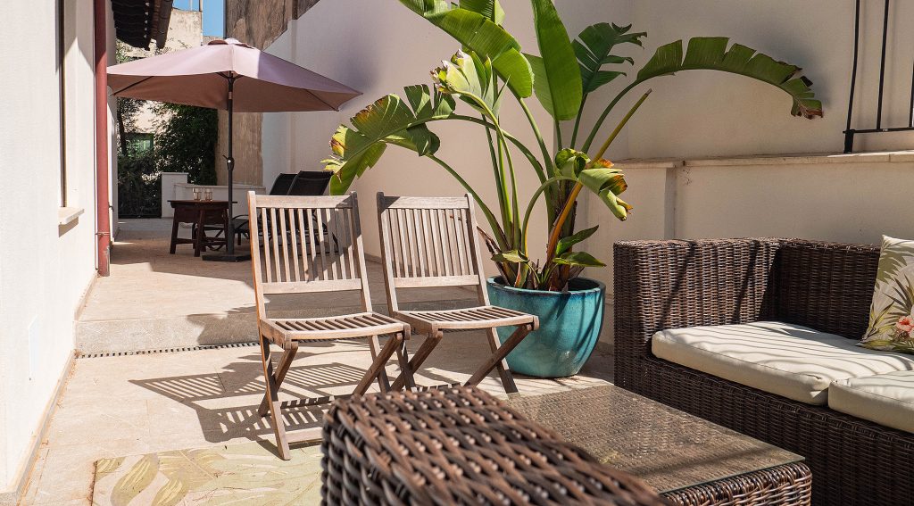 Enjoy the Mediterranean life in this stylish elegant house with terraces, in the middle of the city of Palma and yet quietly located. The bohemian district of El Terreno is located between the Bellver Park with its castle and the fashionable Paseo Maritimo with restaurants, marina and cafes.