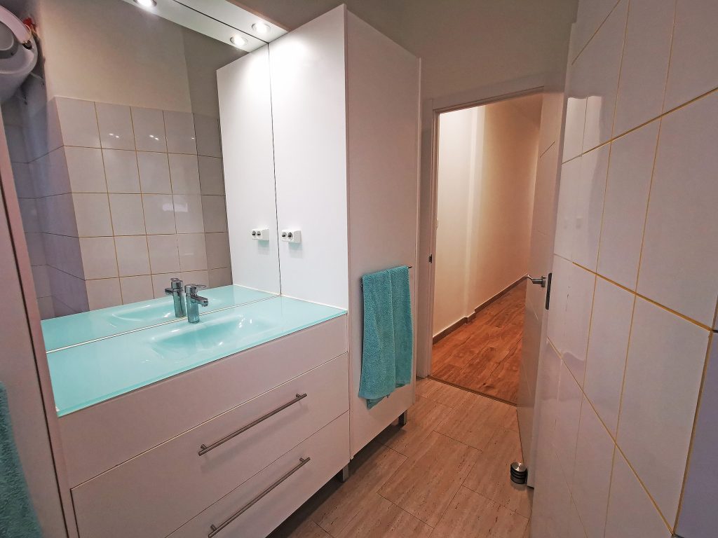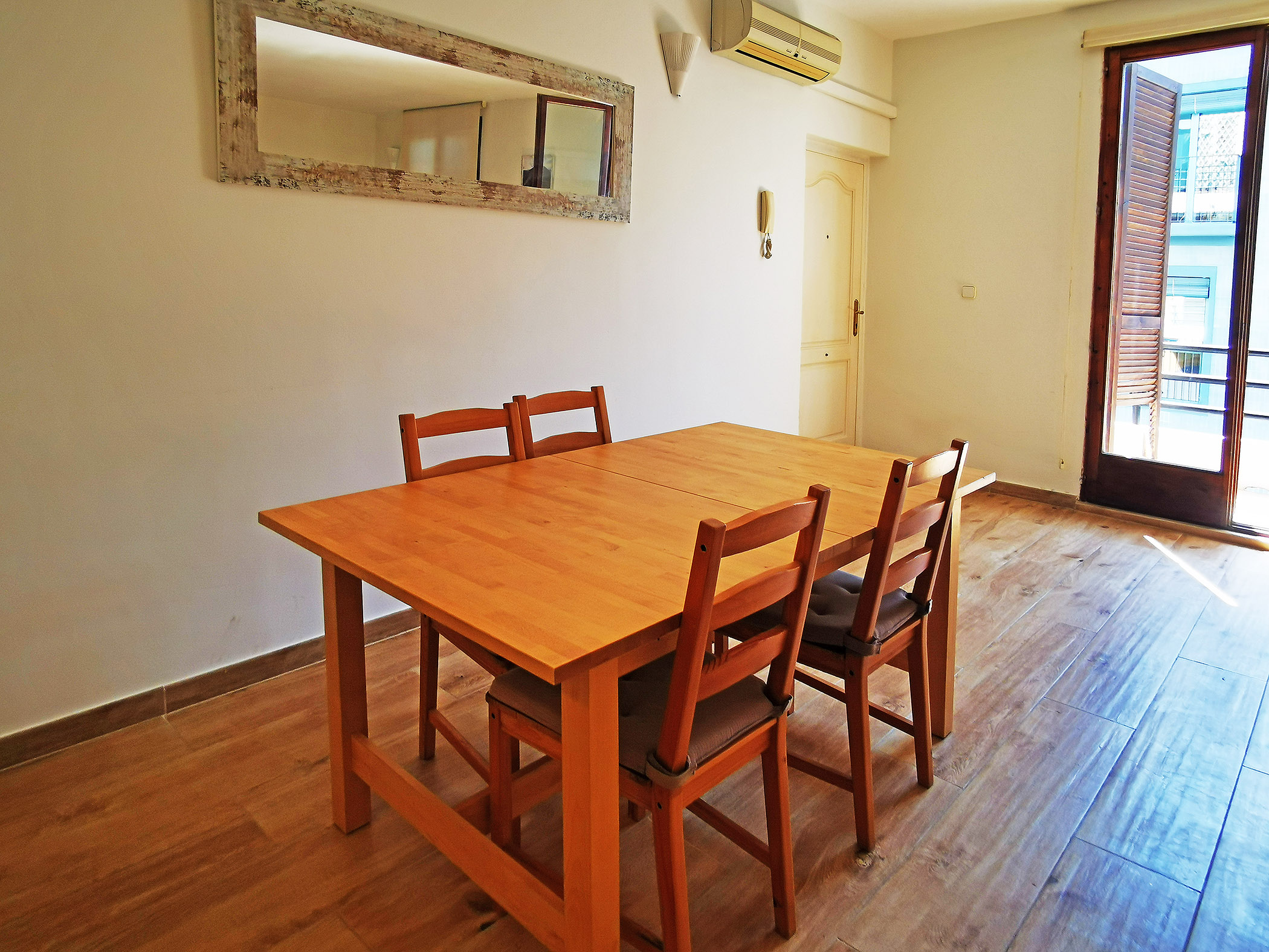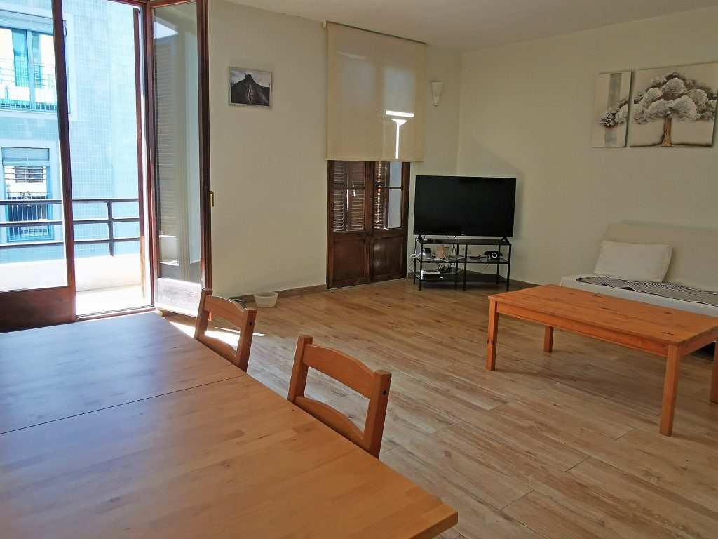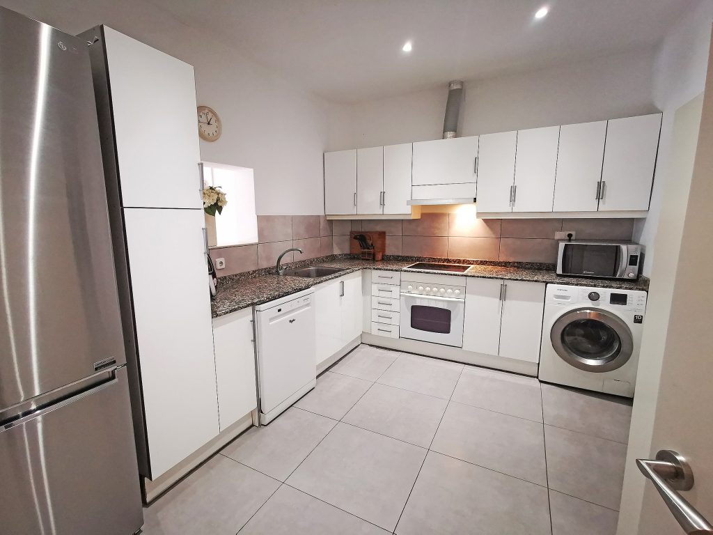 The apartment, which is divided into a generous 112 m2 of living space, offers a total of 3 bedrooms and 2 bathrooms, one of them en suite, a large living room and a semi-open kitchen. From the terrace you have a view of Palma’s new hotspot, Plaza Gomila. Thus, you are within walking distance of shops, bars and restaurants.