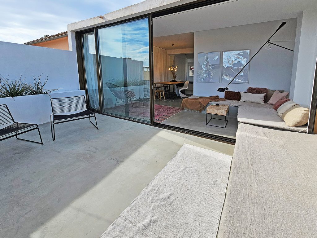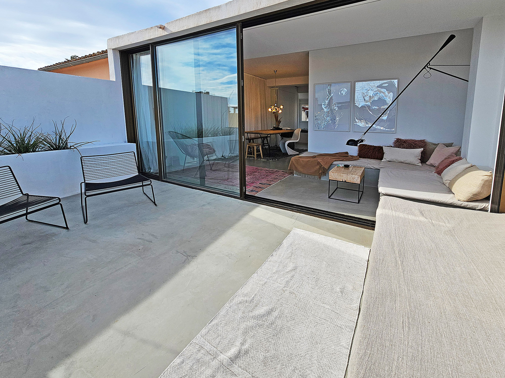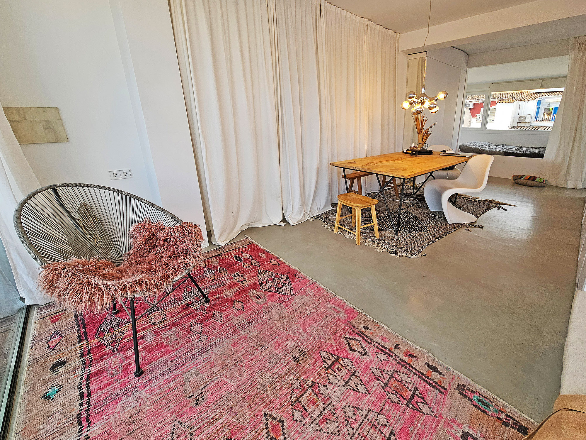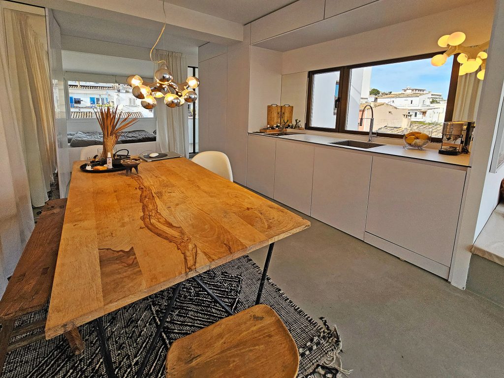 This penthouse is located in Palma’s trendy bohemian neighbourhood of El Terreno on the 3rd floor of a well-kept building. The apartment has been completely renovated and has 2 terraces, one facing the sea and one facing the park with its Bellver Castle to enjoy the evening sun.