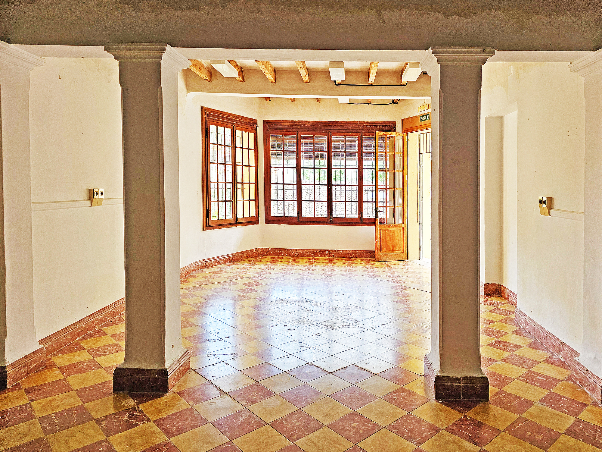 This is your chance to get hold of one of the typical El Terreno properties. A worthwhile investment as a project to resell or to move in yourself. It is the garden floor of a villa from the 30s with a total of 3 floors, there is one apartment per floor, each with separate access. Characteristic are the beautiful high ceilings with wooden beams, several columns and well-preserved antique tiles. A jewel that wants to appear in new splendour. The future distribution could be as follows: living-dining room with open kitchen, 3 double bedrooms, 2 bathrooms, laundry room, large storage room outside. The constructed area is 335m2, of which 201 m2 are terraces. All papers available, city gas, electricity and water connection. We will be happy to advise you on a renovation of this property. It is possible to build a pool.