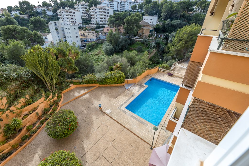 The apartment is located in the upper part of the El Terreno district, right next to Bellver Park, Palma’s green lung. In a well-kept building with elevator and parking, this apartment is south orientated.