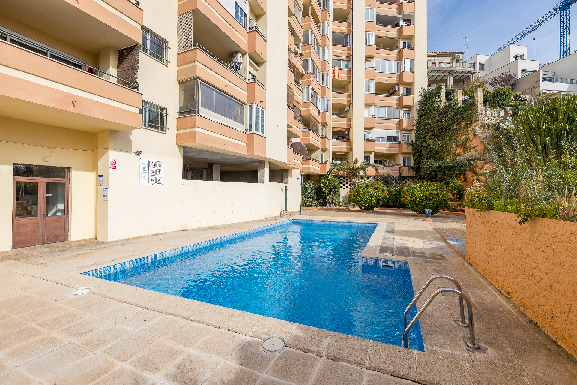 The apartment is located in the upper part of the El Terreno district, right next to Bellver Park, Palma’s green lung. In a well-kept building with elevator and parking, this apartment is south orientated.