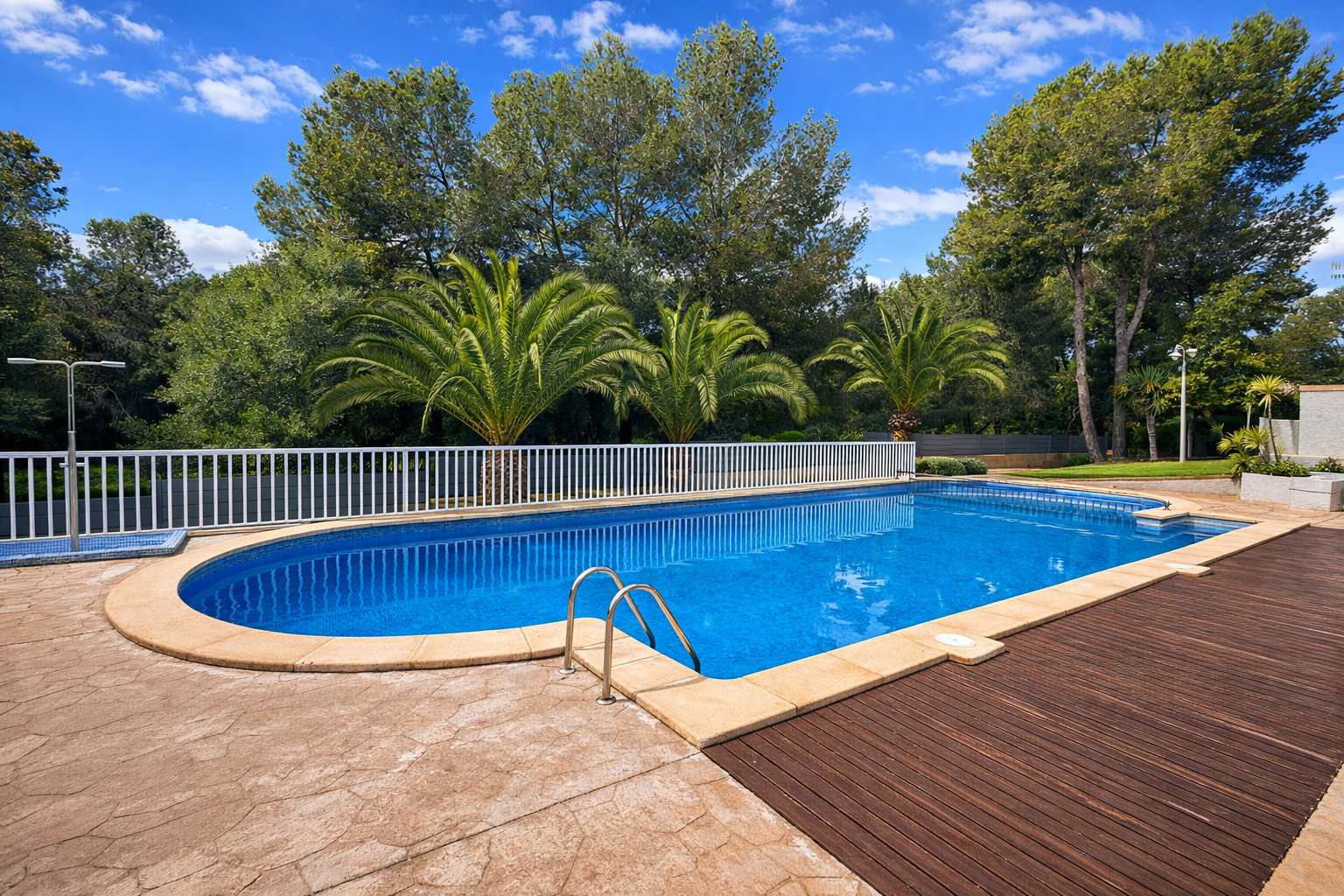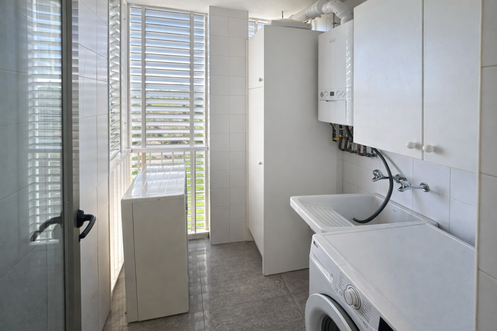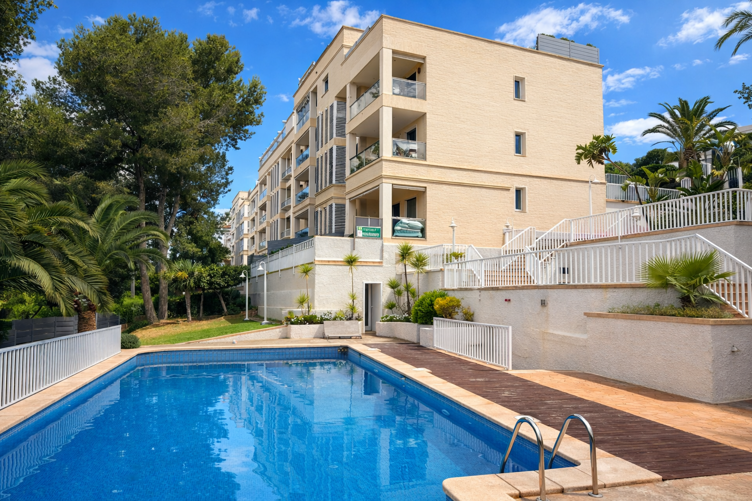 The very well-kept residential complex has an elevator and communal pool. Two parking spaces are also included in the purchase price, offering additional convenience.