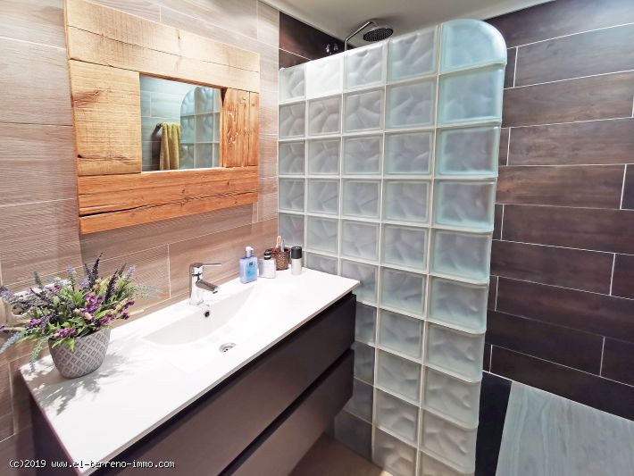 145m2 living space, 80m2 terrace, 3 bedrooms with access to another terrace, 2 bathrooms plus guest toilet, living room with access to the terrace, kitchen, storage room (4m2), 1 parking space (16m2)