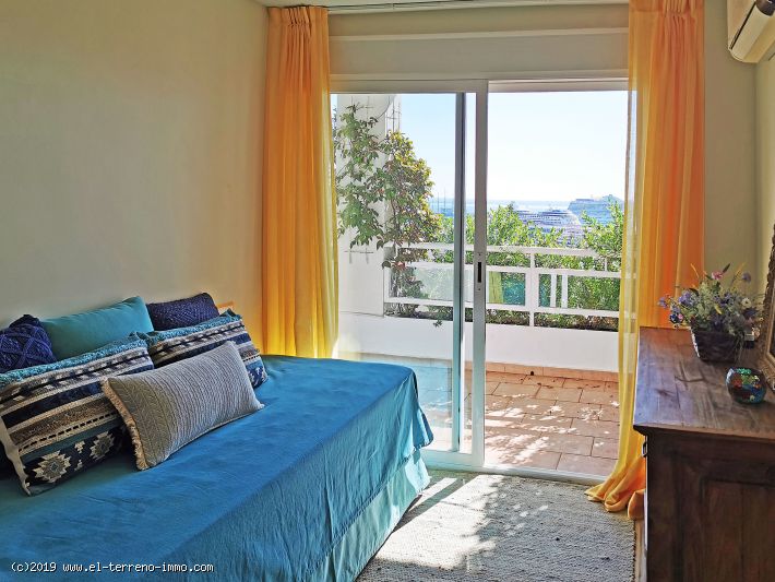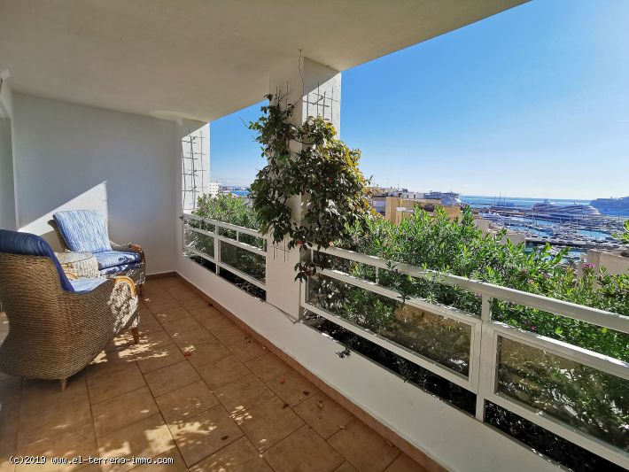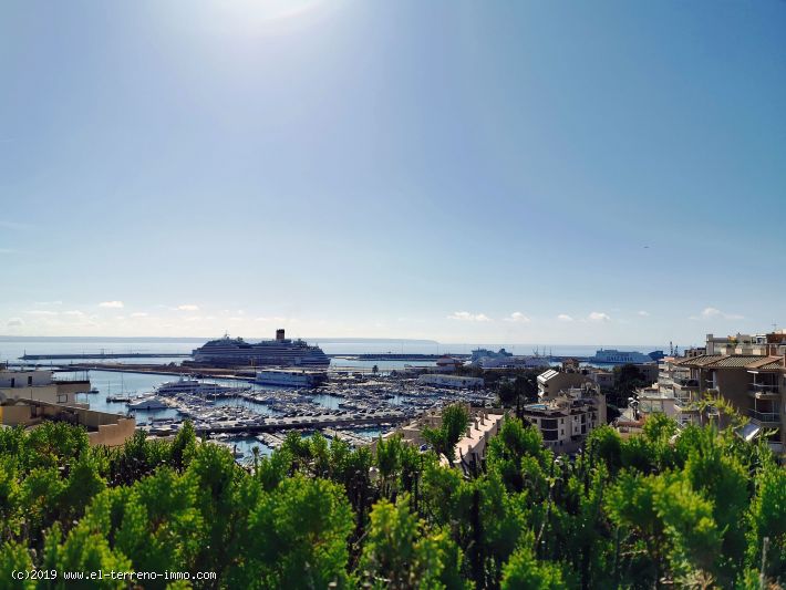 This spacious penthouse is spread over 2 floors in the privileged area of El Terreno, within walking distance of Palma Port, restaurants and shopping centre. The bright living room has access to a large and sunny terrace from which you can enjoy a beautiful view of the city and the sea. The apartment features a modern, fully equipped kitchen, 3 bedrooms, 2 bathrooms, 1 guest toilet, as well as a spectacular private roof terrace with plenty of privacy and panoramic views of the sea, the cathedral and the port. The whole apartment has air conditioning hot/cold.