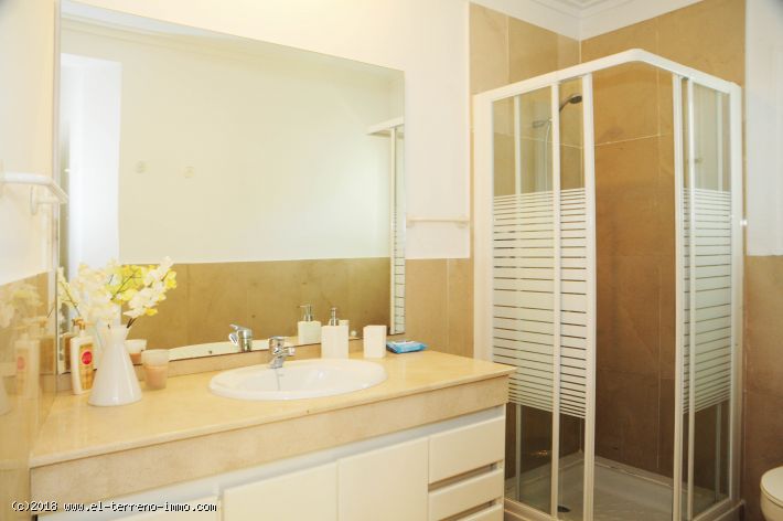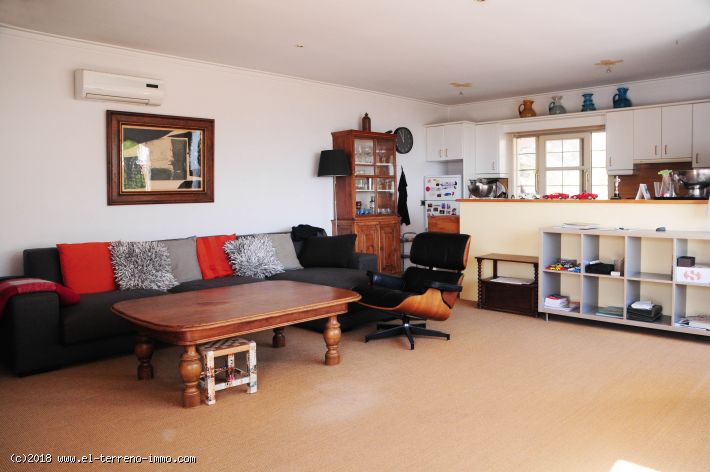 Upper level: living room & dining room with open kitchen, 2 bedrooms, 2 bathrooms en suite