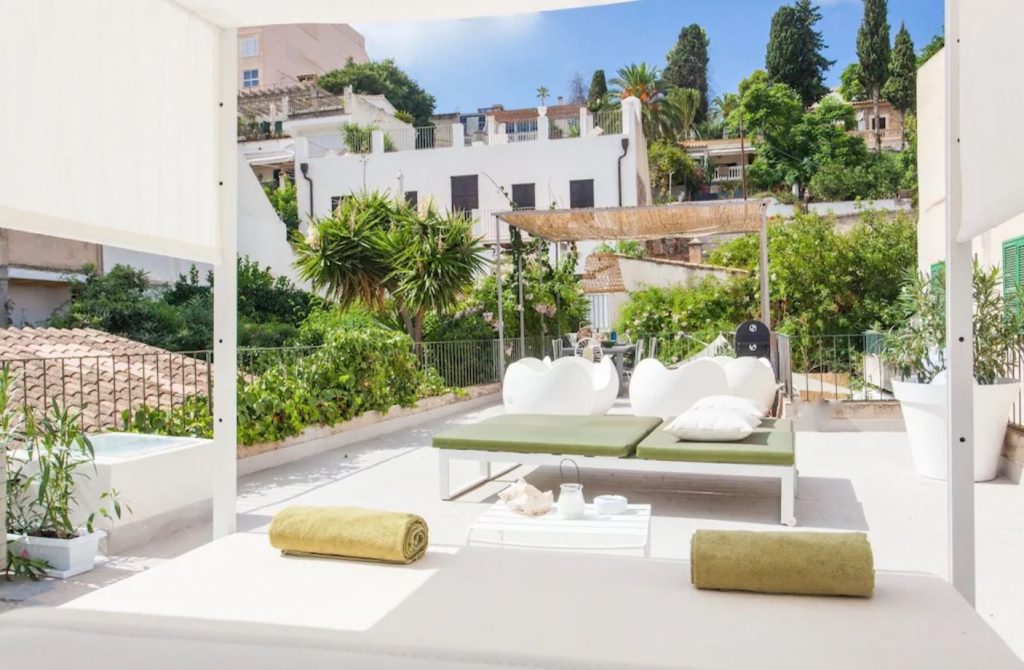 La elegante villa luminosa se encuentra en la parte tranquila de El Terreno, a poca distancia del hermoso Bellver Park y el centro de la ciudad de Palma.