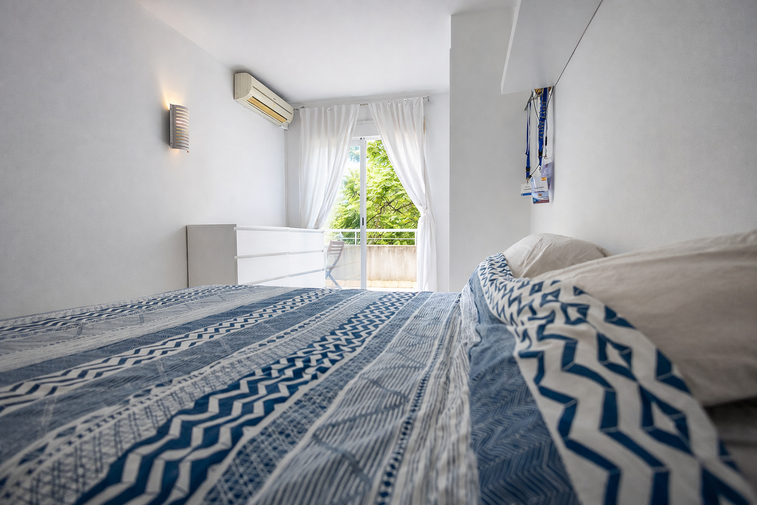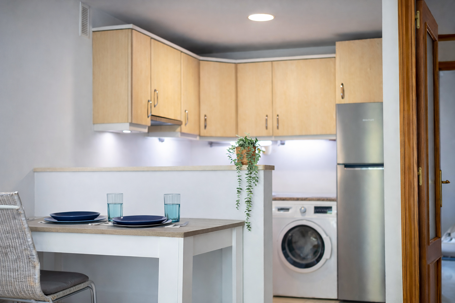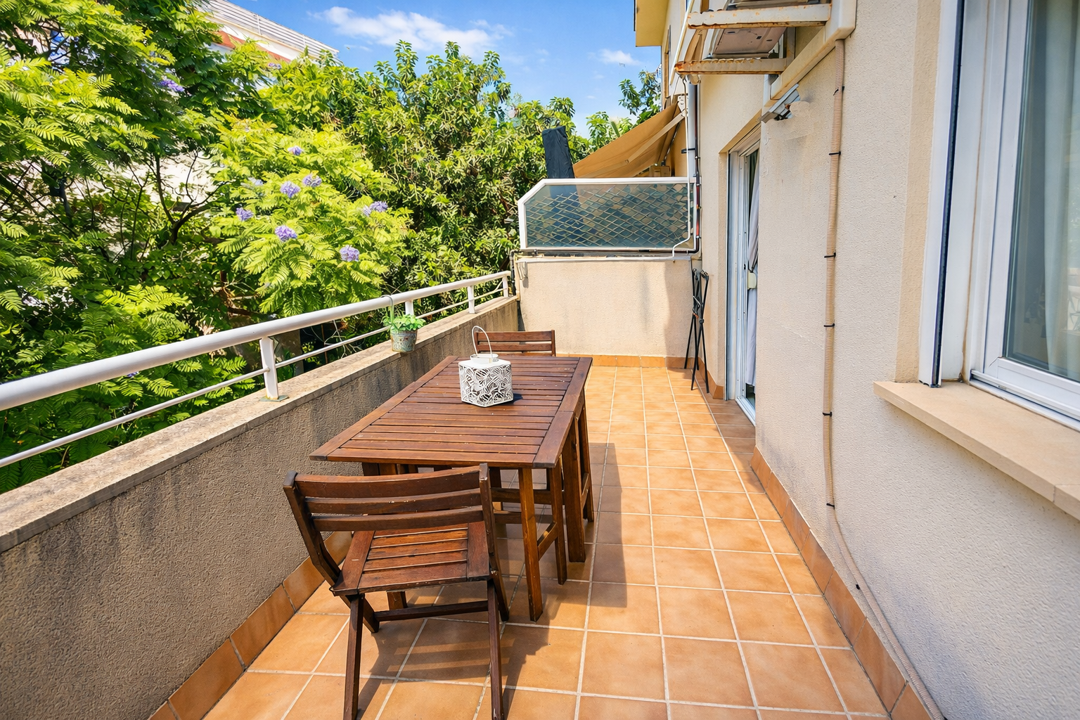 Una terraza privada en la parte trasera del apartamento ofrece espacio adicional para disfrutar de agradables veladas o desayunar al aire libre.