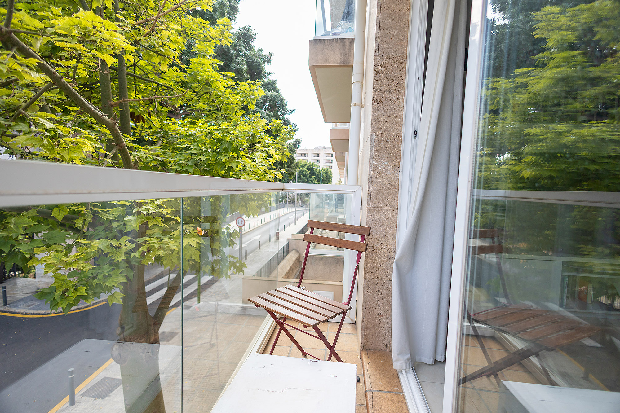 Un balcón con vistas al verde ofrece unas vistas maravillosas al parque contiguo e invita a relajarse en un entorno tranquilo.