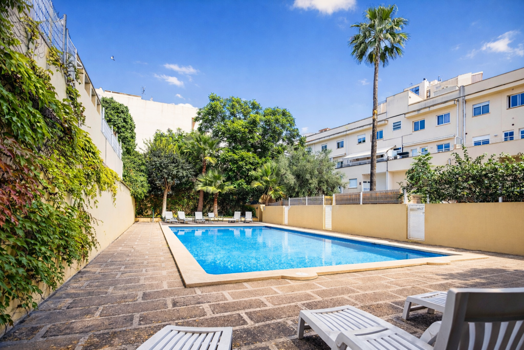En la mejor ubicación de Palma, El Terreno, justo al lado del parque y conectado con el nuevo Paseo Marítimo, se encuentra este encantador apartamento de 2 dormitorios en una cuidada urbanización con piscina comunitaria.