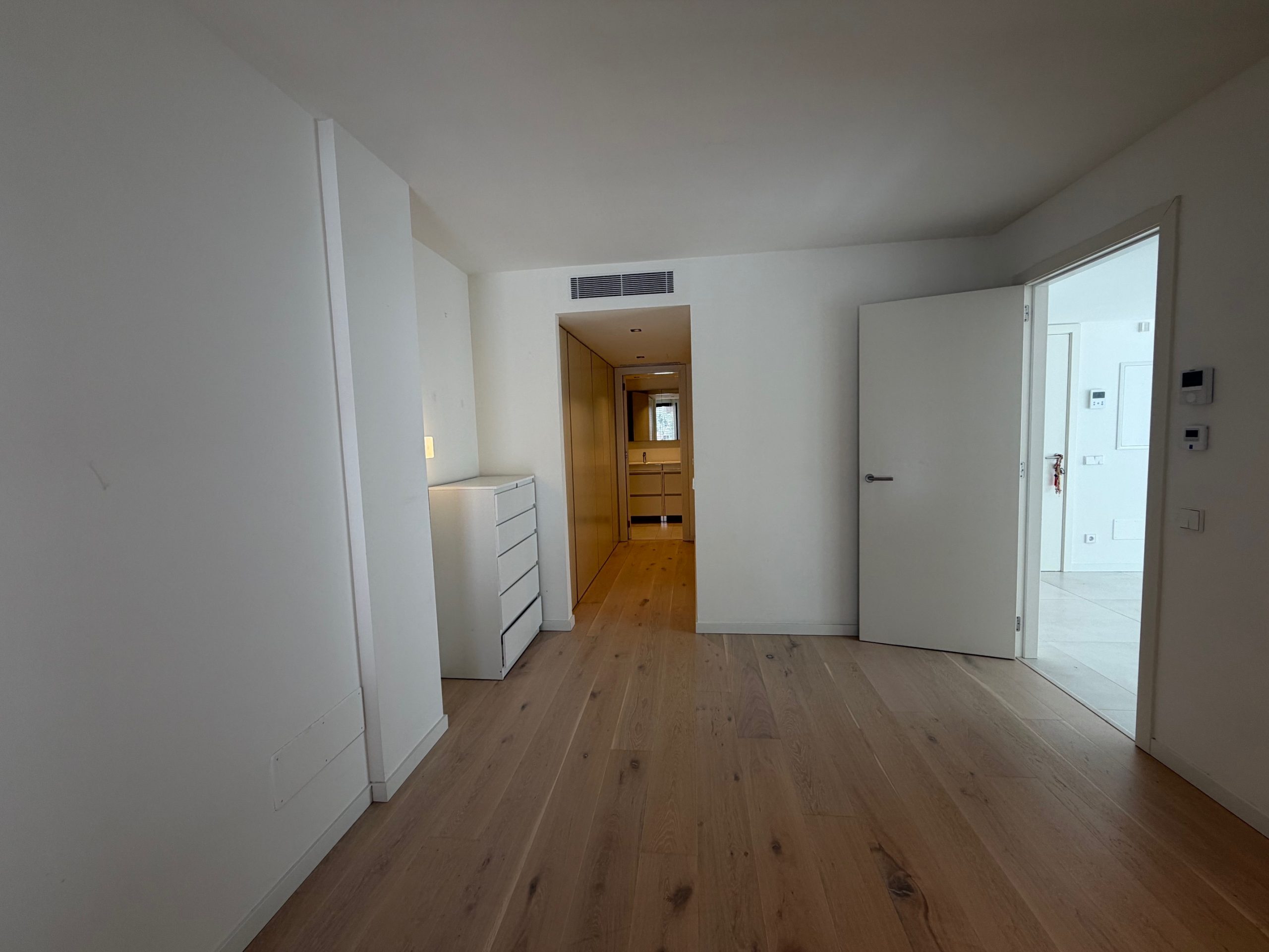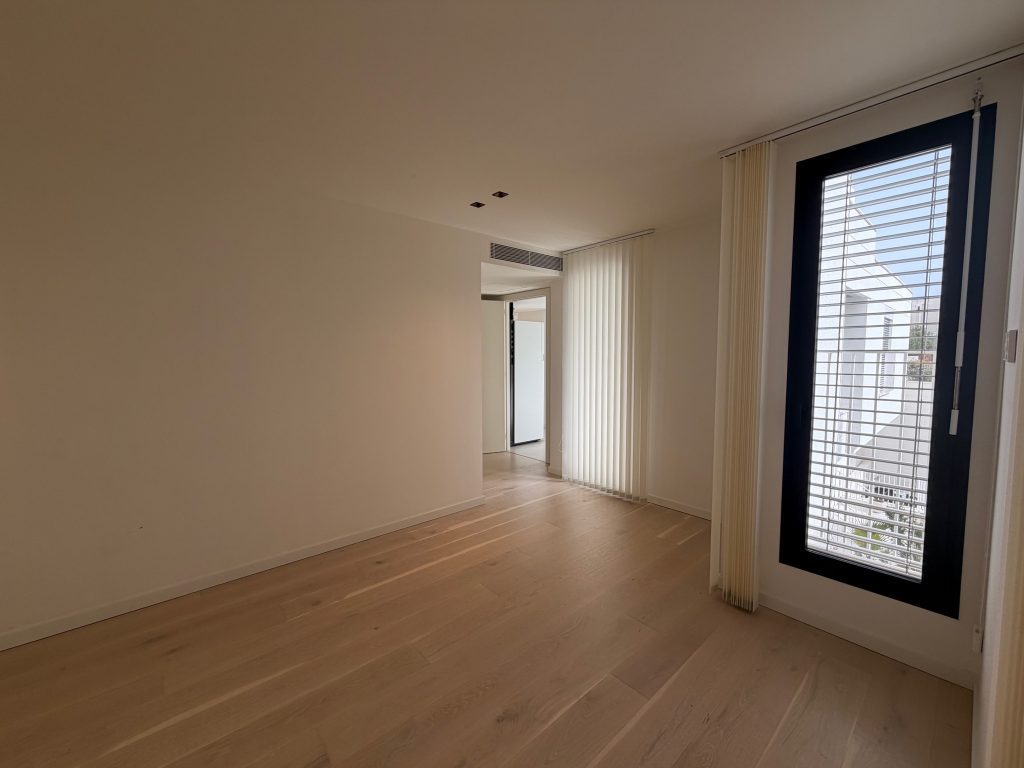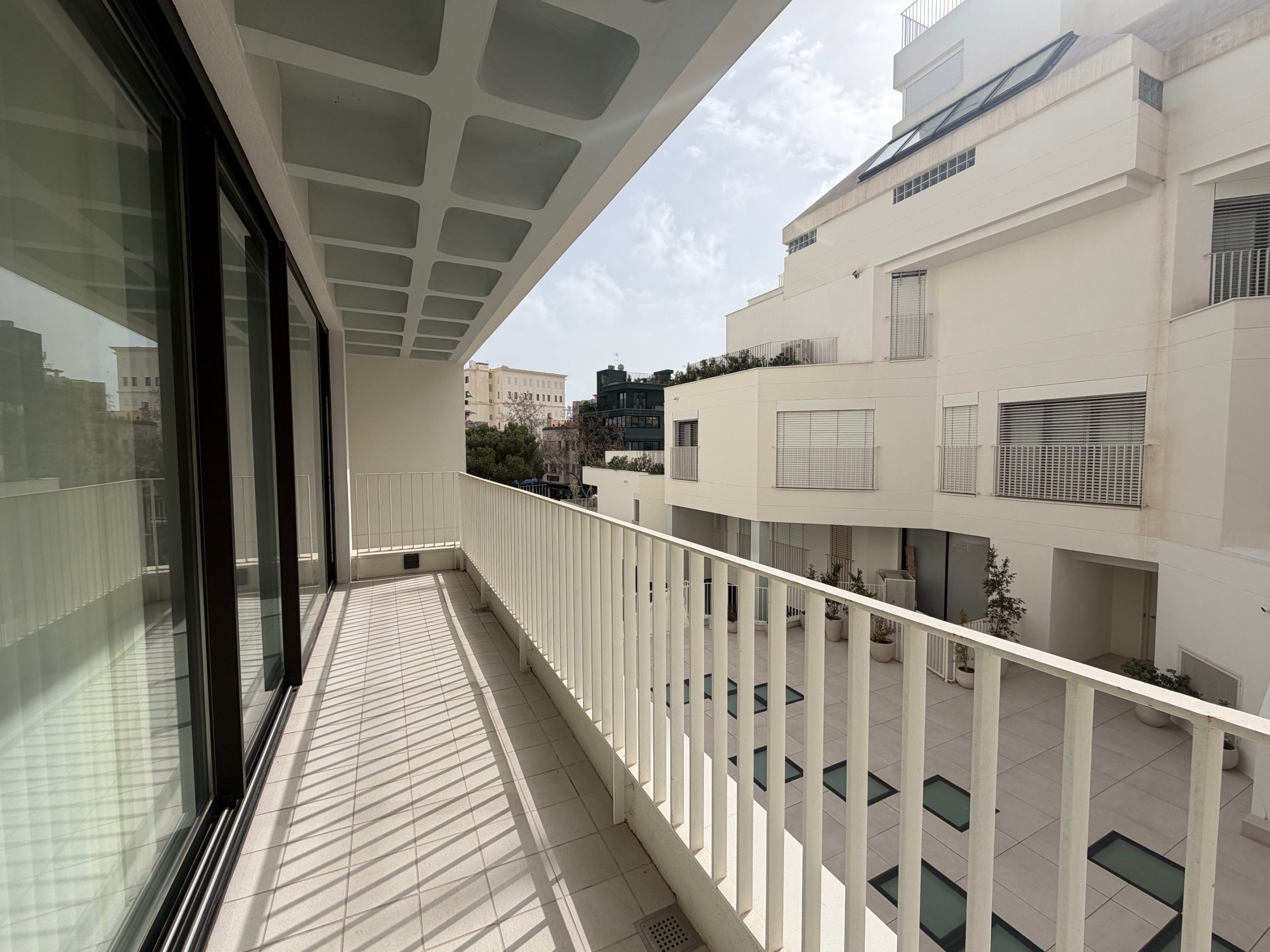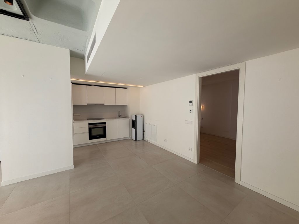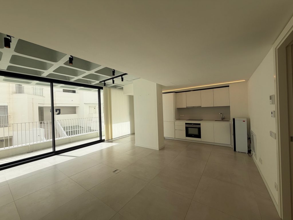 Situado en la nueva Plaza Gomila, la zona de moda de Palma, este apartamento tiene 2 dormitorios, 3 baños con lavadora y secadora, un salón con cocina abierta y una terraza orientada al sur. El uso de una piscina comunitaria y un gimnasio están incluidos en el precio del alquiler.