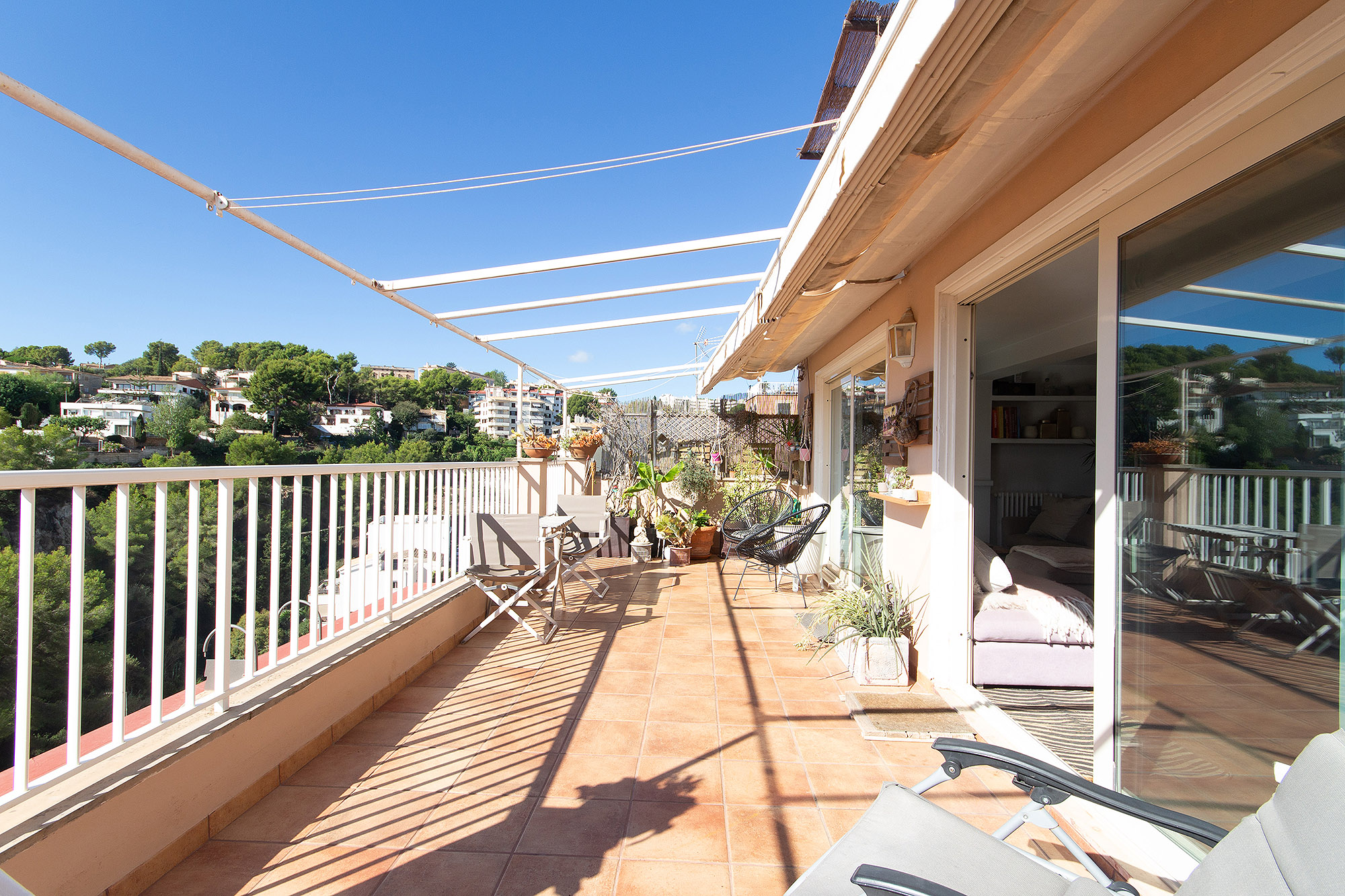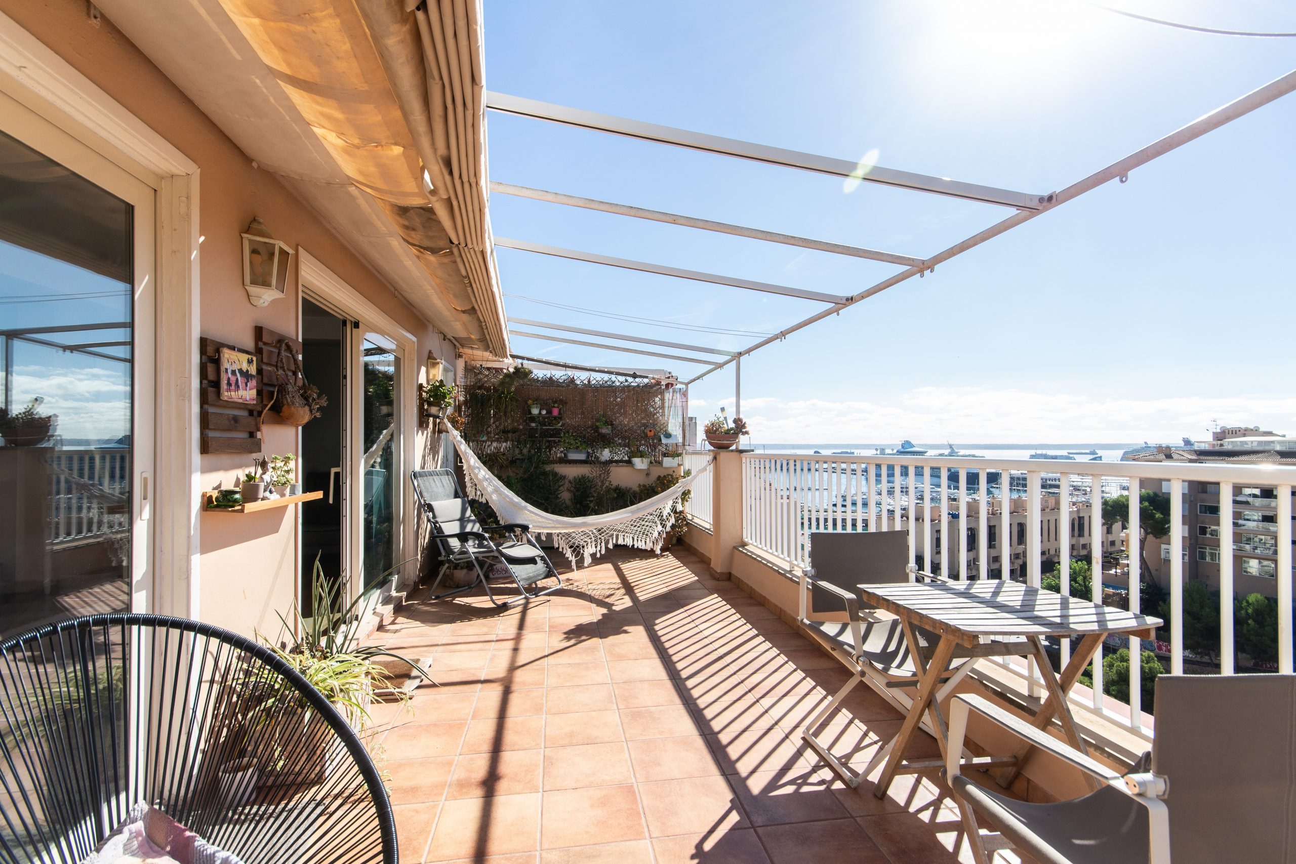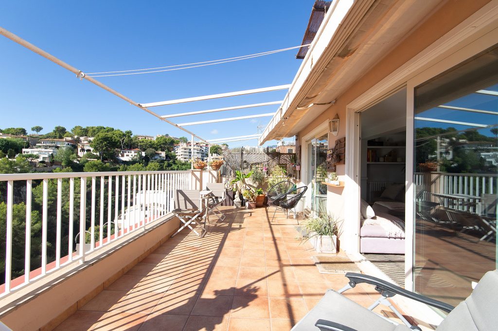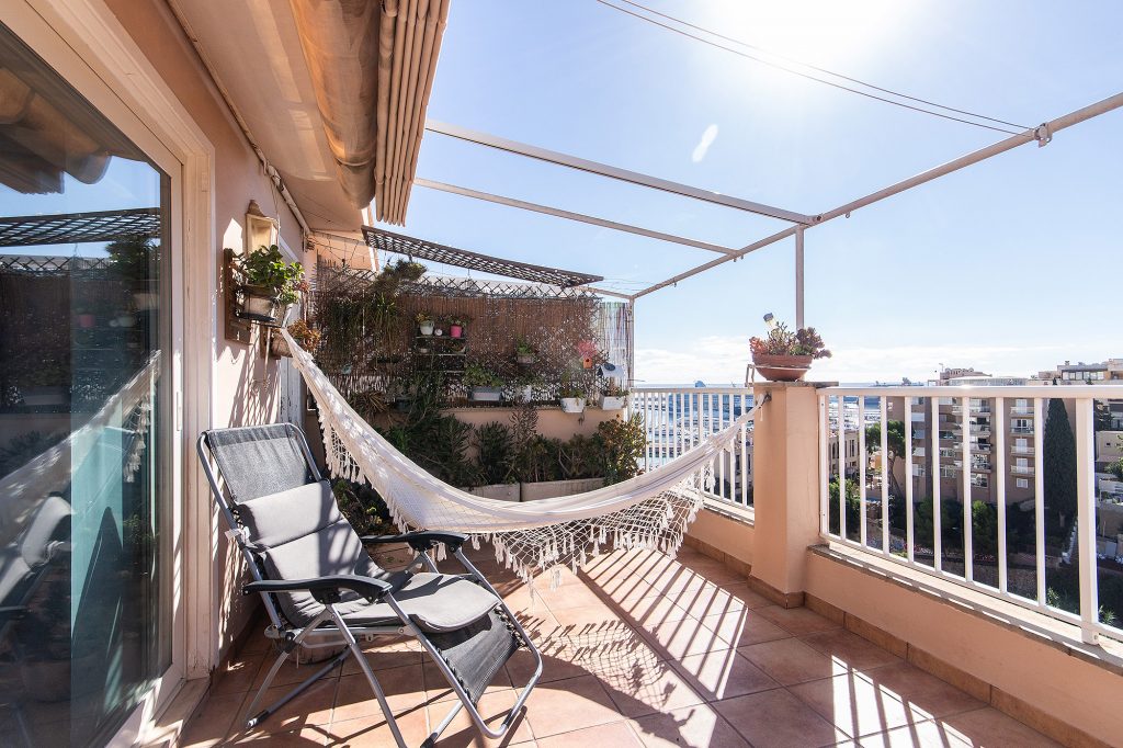 Este ático impresiona por su orientación sur en una zona tranquila en el barrio de El Terreno. En la amplia terraza de 24 m2 con vistas al mar, podrá disfrutar del sol durante todo el día.