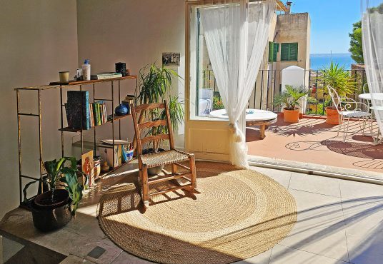 Le penthouse est situé au centre au 5ème étage sans ascenseur et a récemment été entièrement rénové. Distribution : 2 chambres, cuisine avec coin repas, salle de bain avec baignoire, 2 terrasses, l’une avec vue sur la mer et l’autre avec vue sur le quartier de Terreno et le parc avec le château de Bellver. En […]