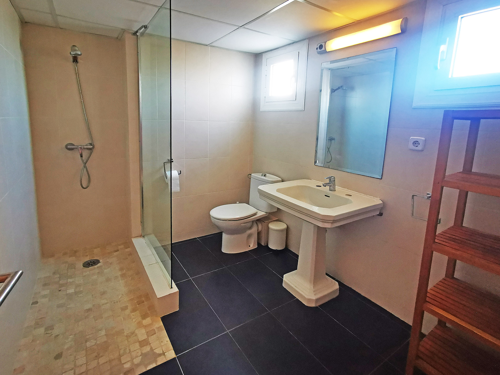 La climatisation est chaude et froide dans toutes les chambres. Une terrasse au niveau du salon, la deuxième terrasse est un étage plus haut.