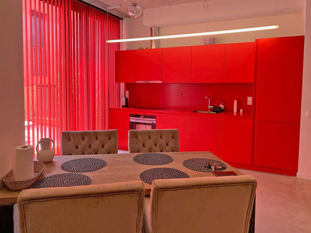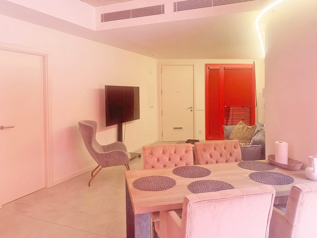 Cette maison de ville est située sur un total de 4 étages et comprend 3 chambres, 2 salles de bains, une terrasse au niveau de l’entrée et une spacieuse terrasse sur le toit. L’utilisation d’une piscine commune et d’une salle de sport est incluse dans le prix de la location.