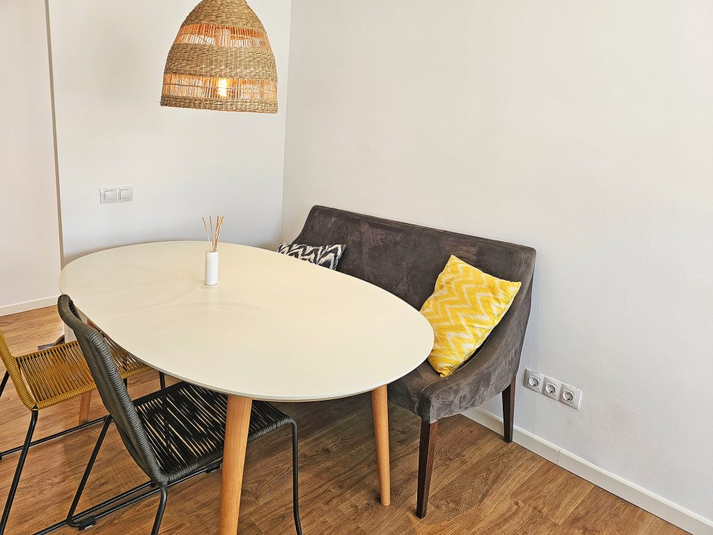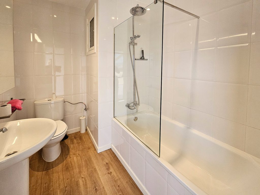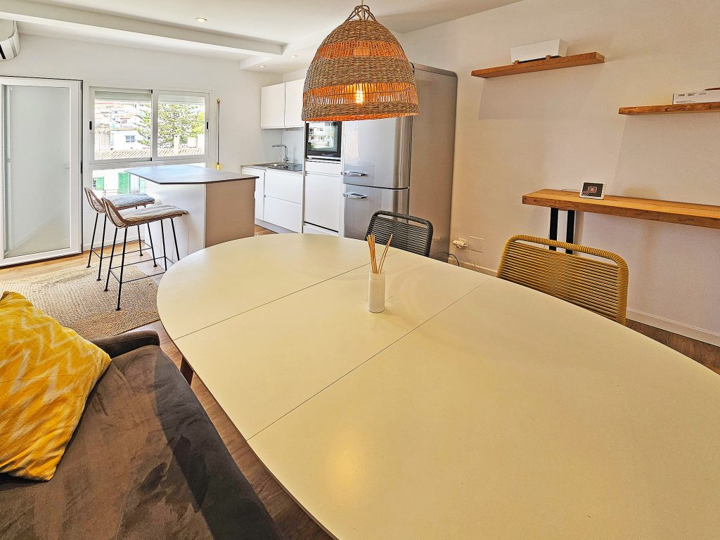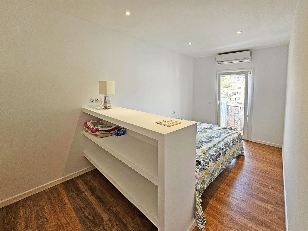 2 chambres, cuisine avec coin repas, salle de bain avec baignoire, 2 terrasses, l’une avec vue sur la mer et l’autre avec vue sur le quartier de Terreno et le parc avec le château de Bellver. En raison de l’orientation intelligente de l’appartement, le soleil du matin et du soir peut être apprécié.