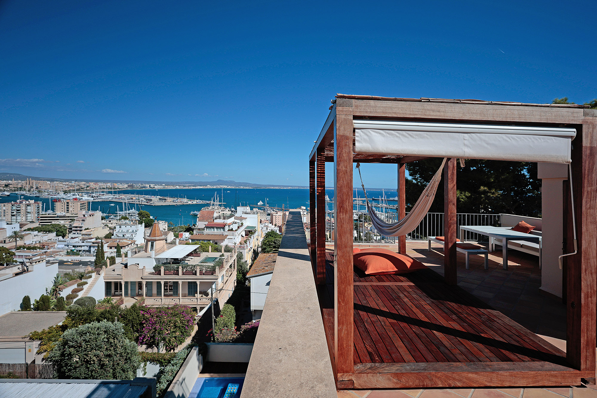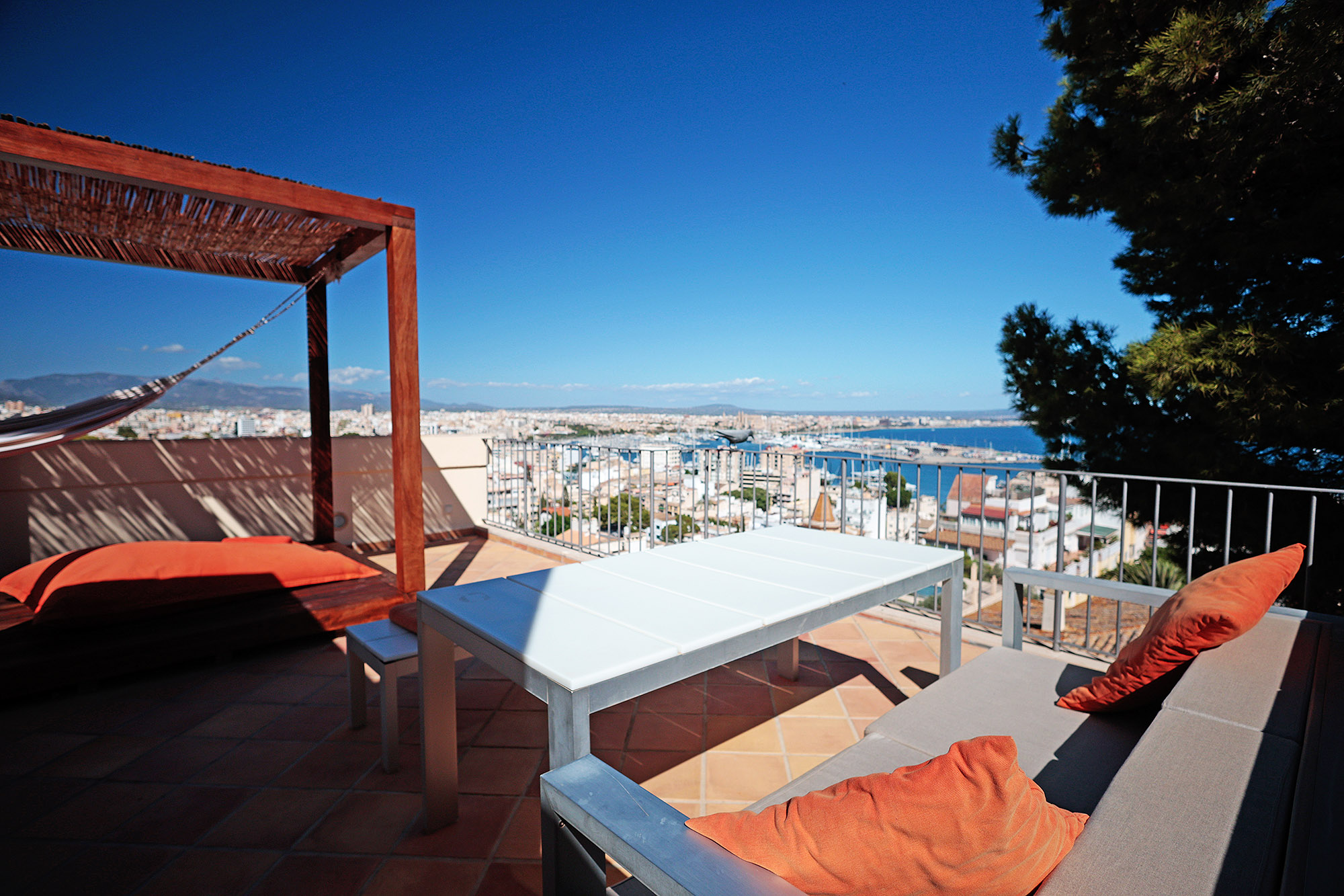 au 3ème étage avec terrasse spectaculaire sur le toit offrant une vue panoramique à 360 degrés sur la mer, les montagnes, le parc, la cathédrale et le port. C’est le point culminant et donc la maison avec les meilleures vues de tout El Terreno.