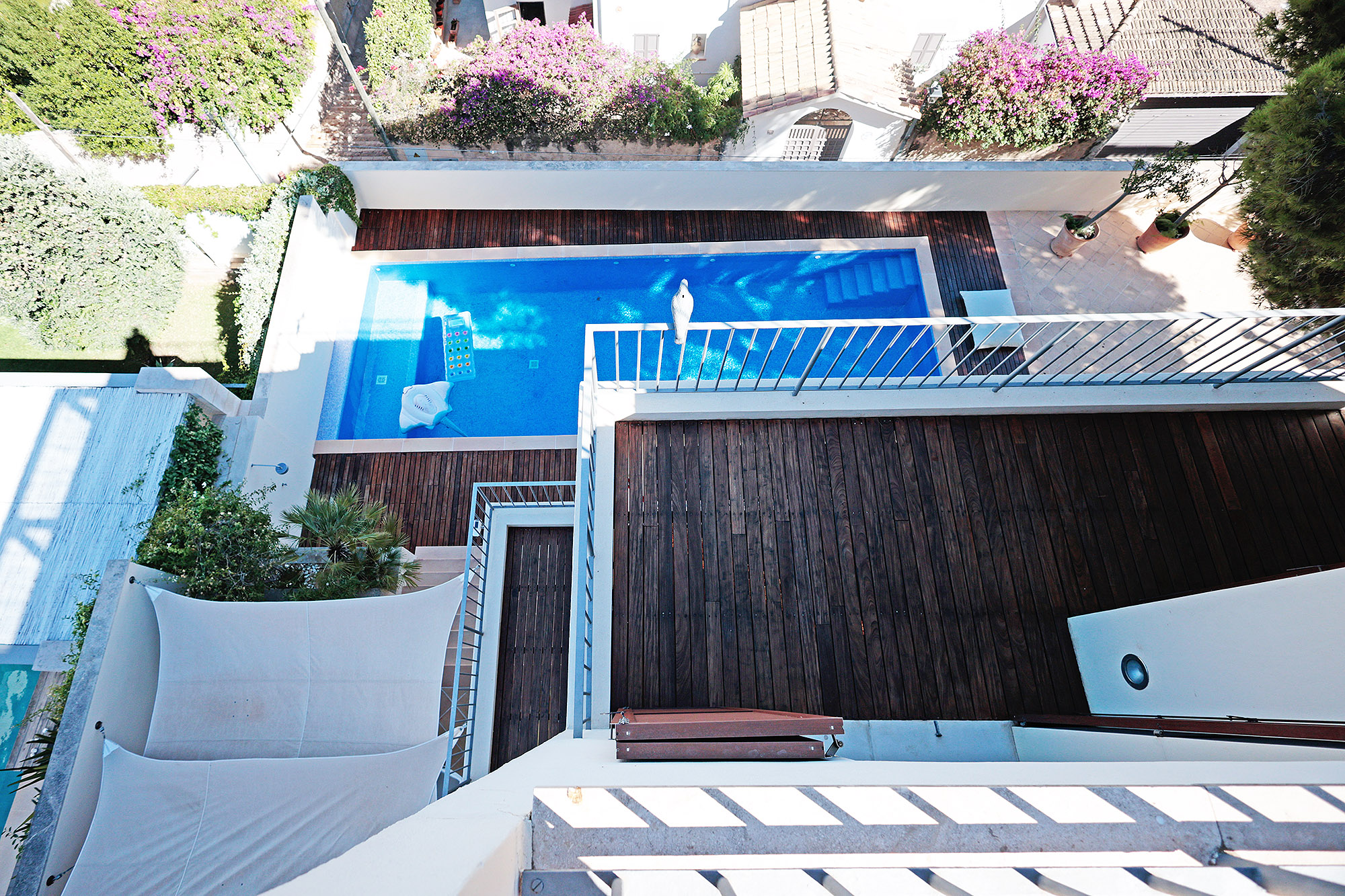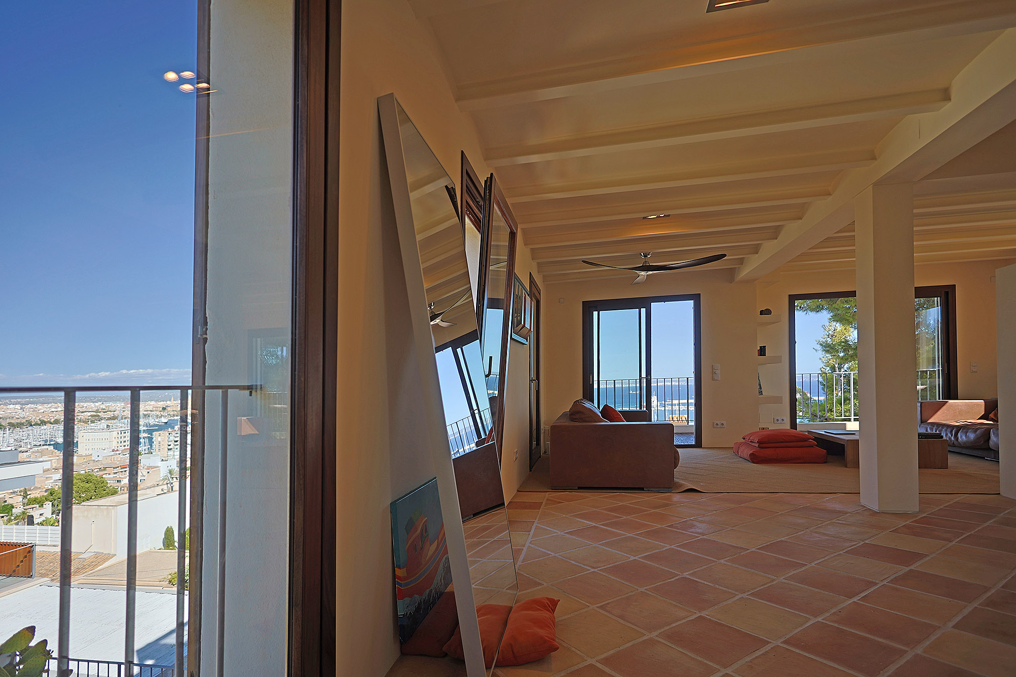 Ce joyau est situé dans la dernière rue d’El Terreno, juste à côté du parc Bellver, et est situé au point culminant de tout le quartier. La vue est donc à couper le souffle et ce déjà au niveau de l’entrée où se trouvent la piscine, le garage pour 2 voitures et une maison d’amis avec sa propre salle de bain.