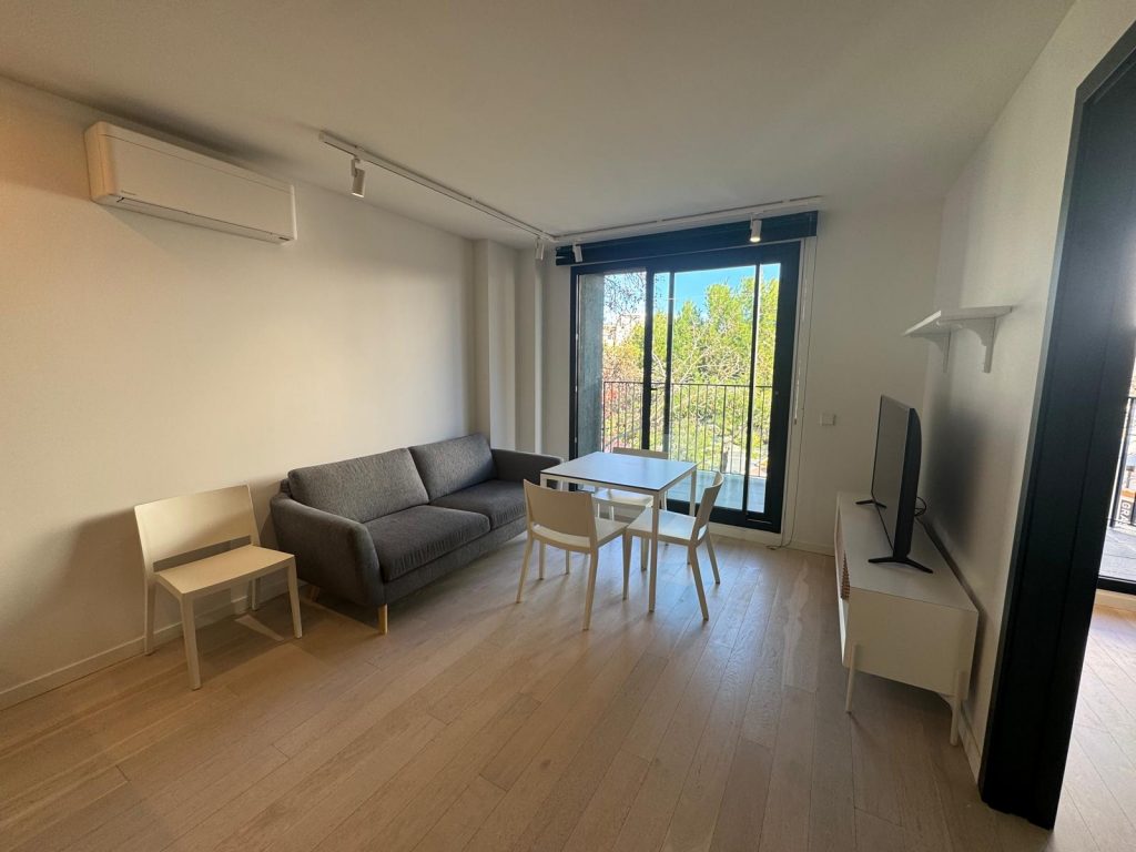 Cet appartement lumineux et moderne se distingue par son sol en bois véritable de grande qualité ainsi que par son équipement confortable avec climatisation et chauffage au sol. L’immeuble fait partie des maisons récemment revitalisées autour de la Plaza Gomila et offre un style de vie urbain et moderne au cœur d’El Terreno.